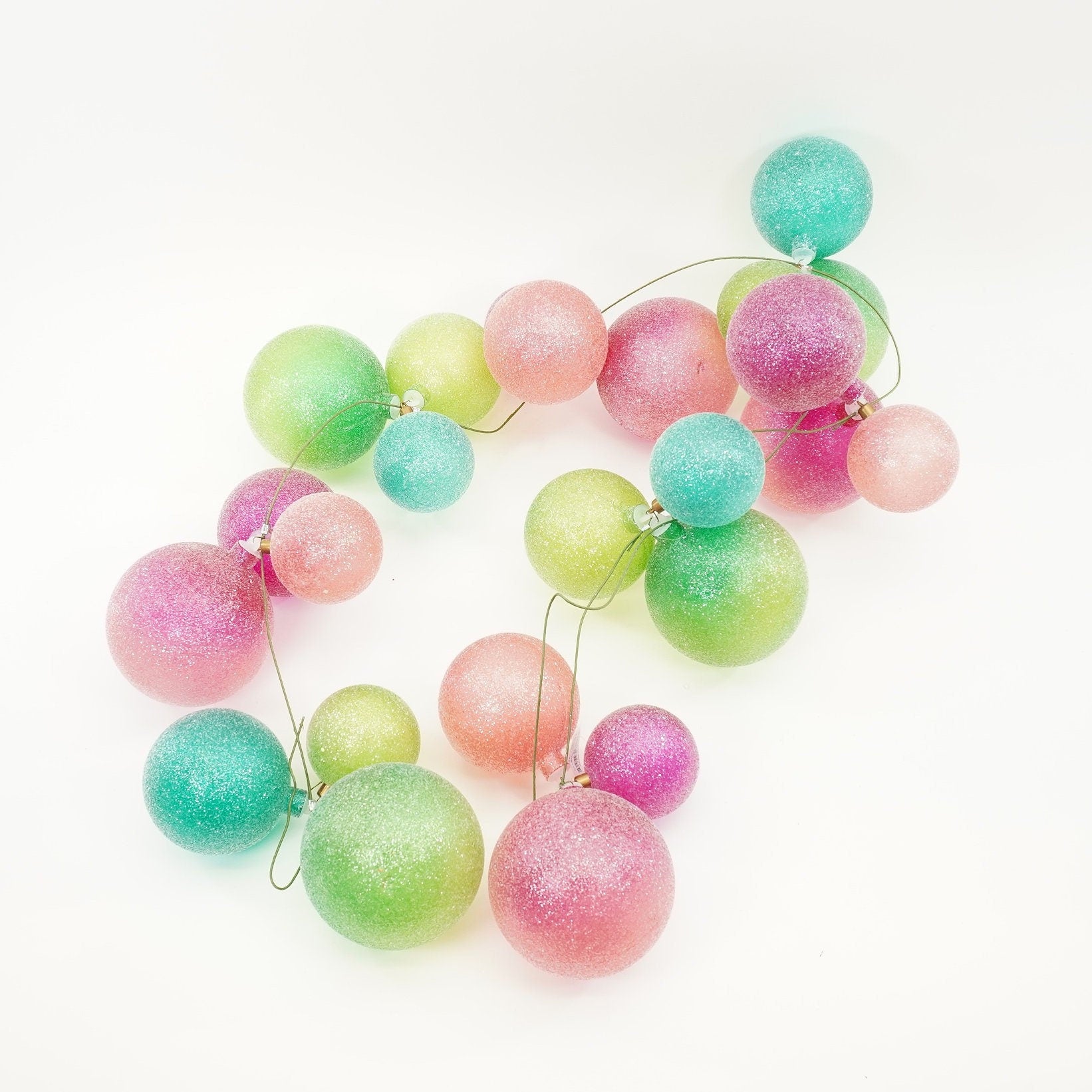6 ft ball multicolor ball garland. Pastel color garland. Sugared garland. Candy theme. Christmas. Party.