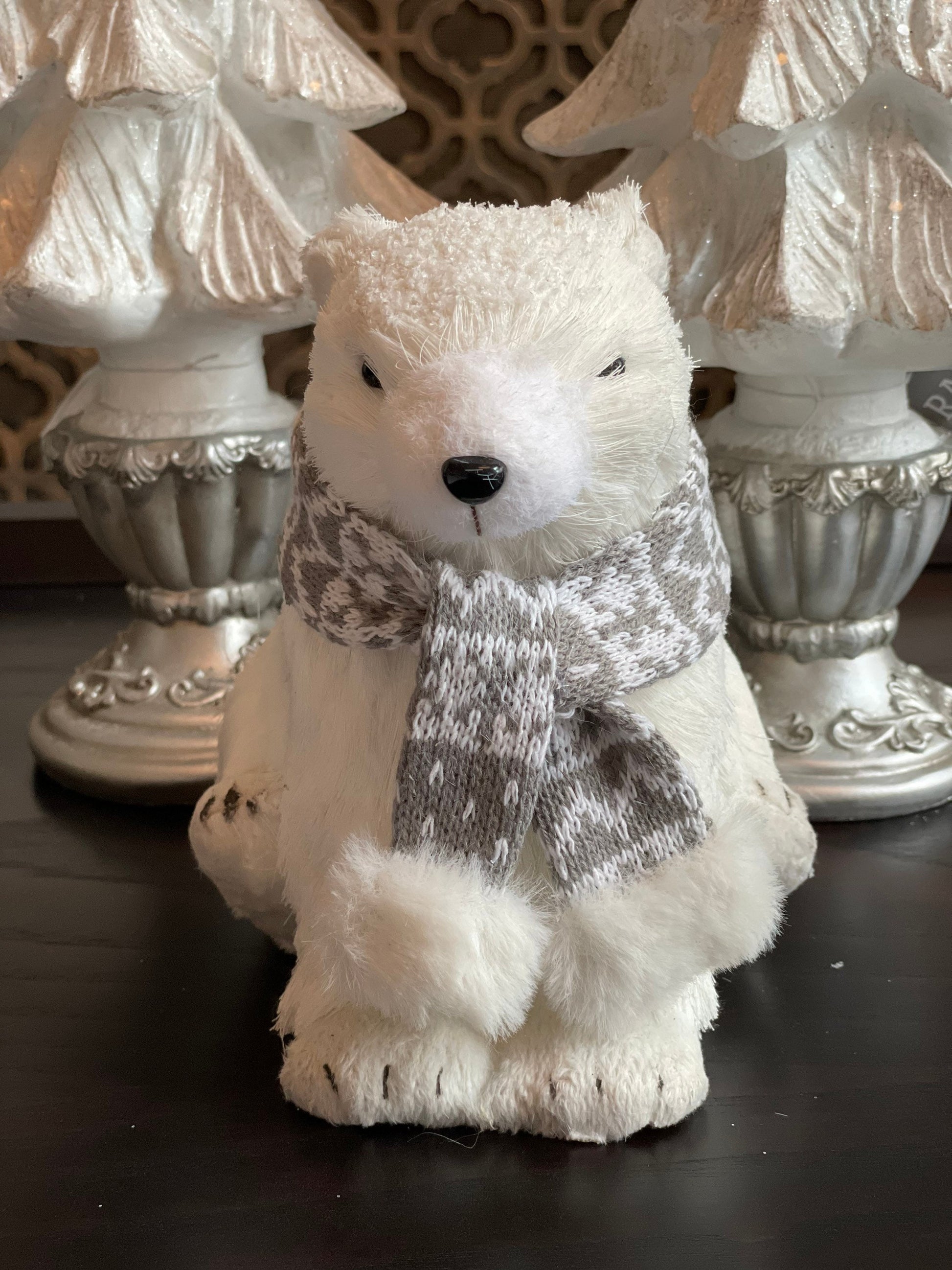 7” Polar bear with scarf ornament. Christmas. Soft material.