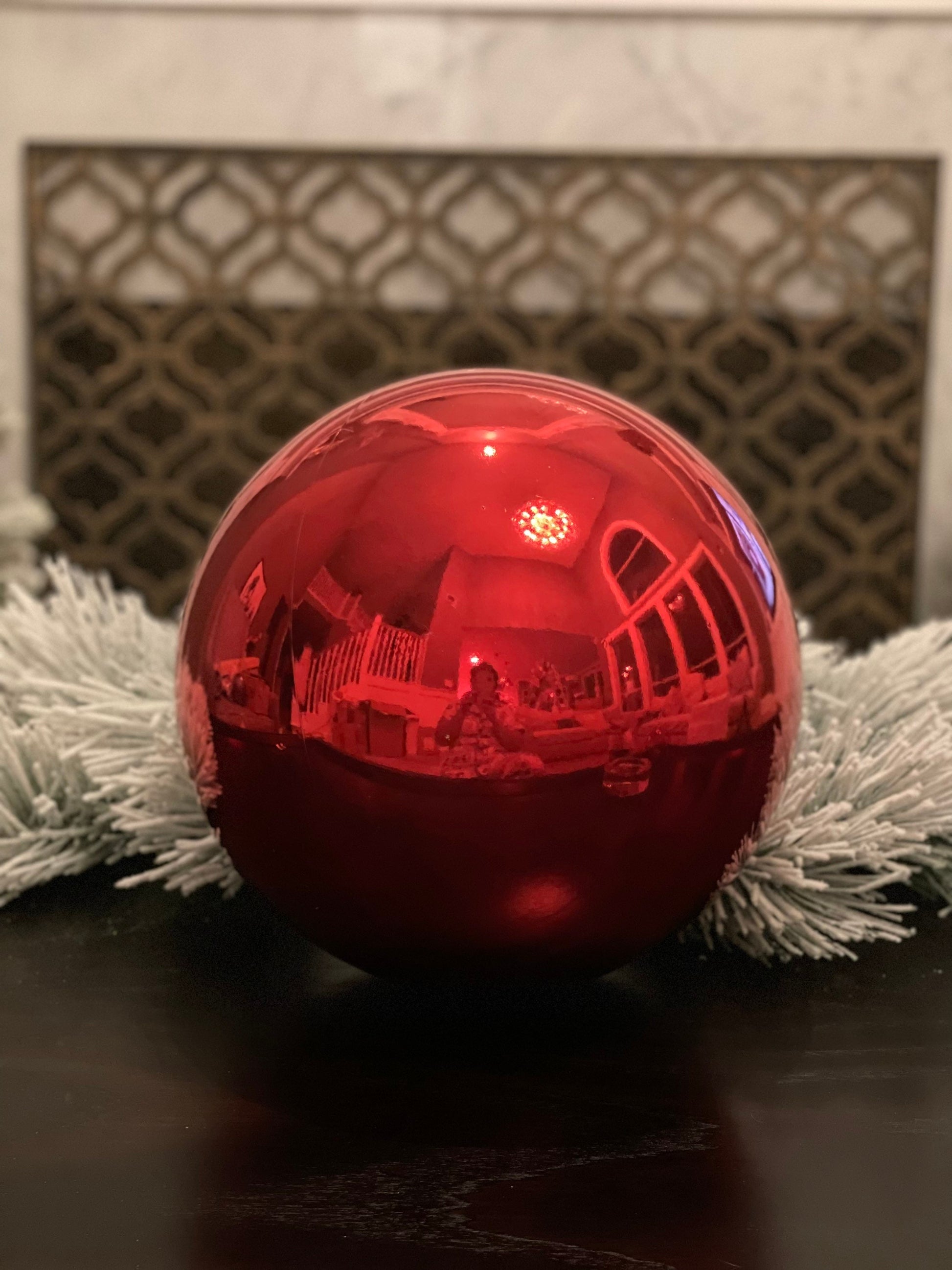 Ball shiny 300mm/ 12” red. Plastic. Shatterproof.