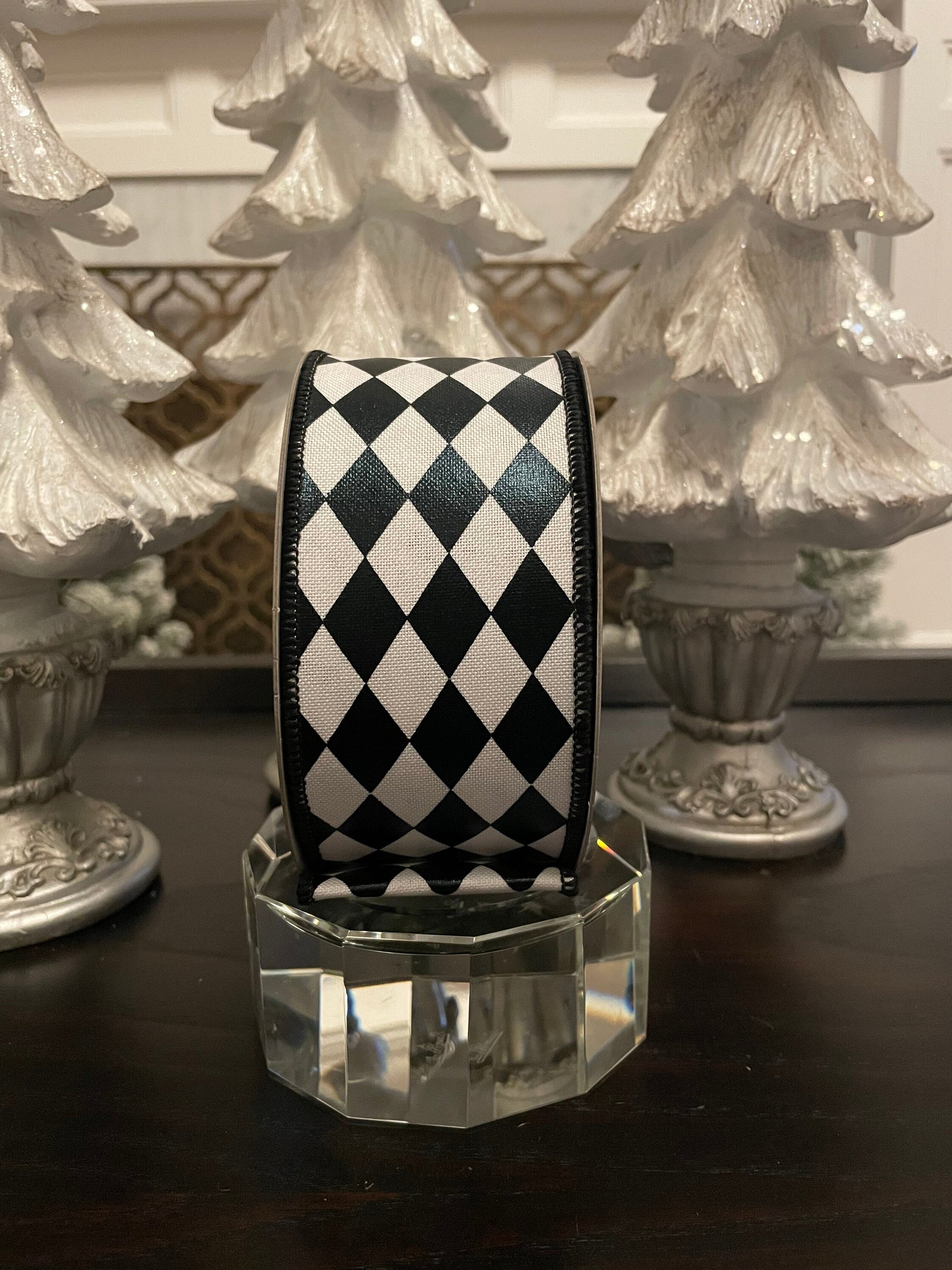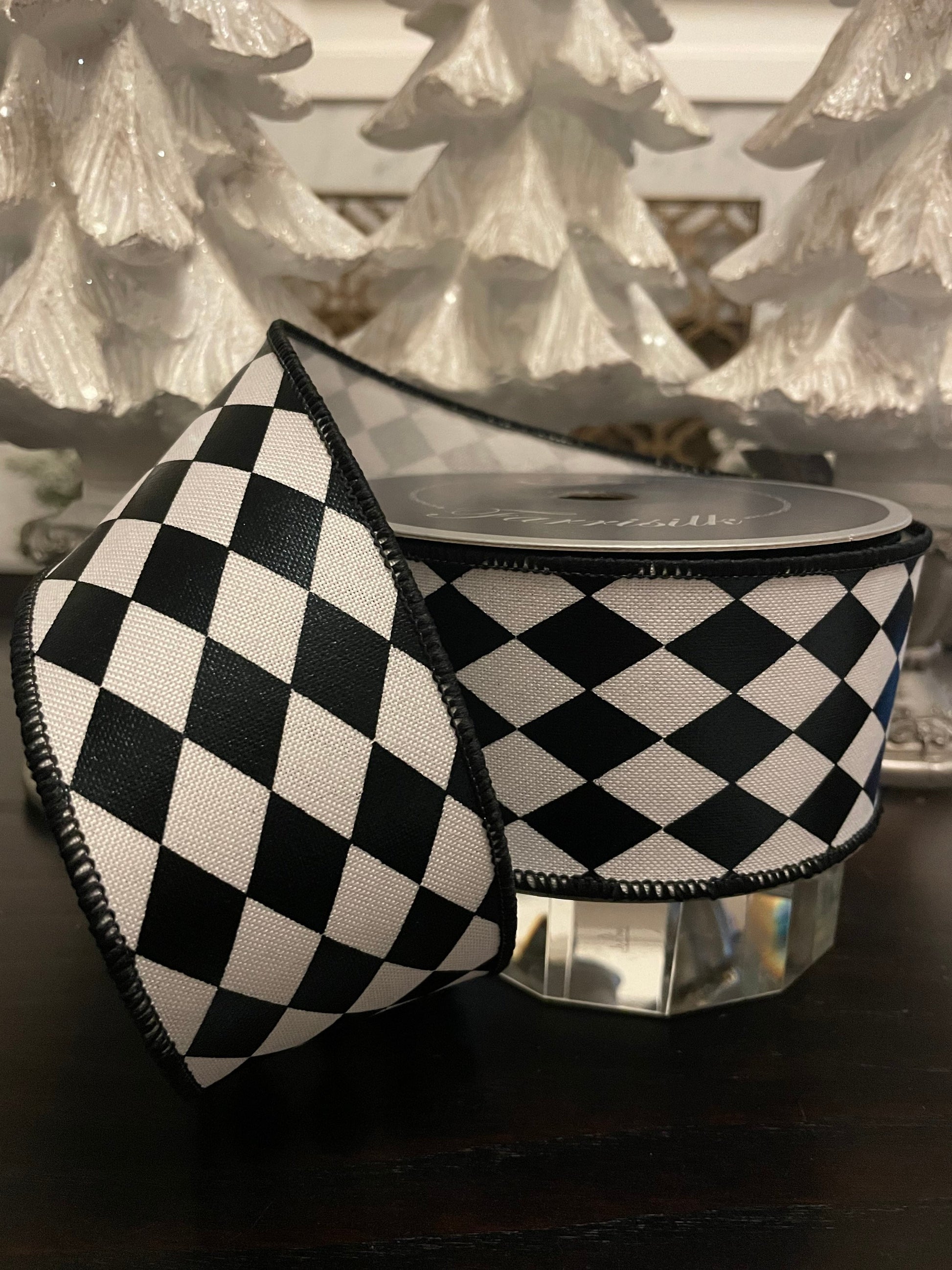Designer Christmas foil jester diamonds ribbon. 2.5”x 10 yards. Wired.