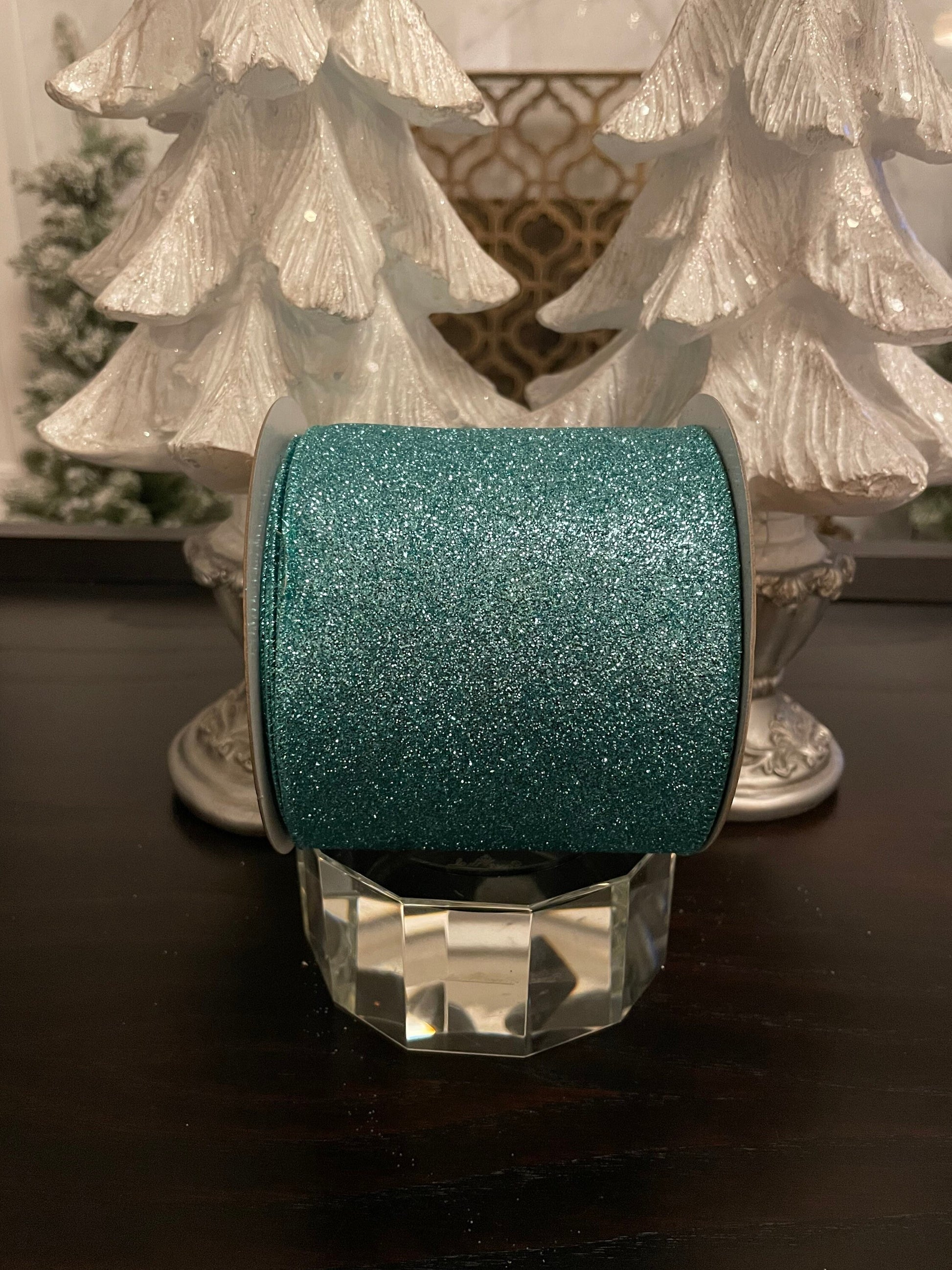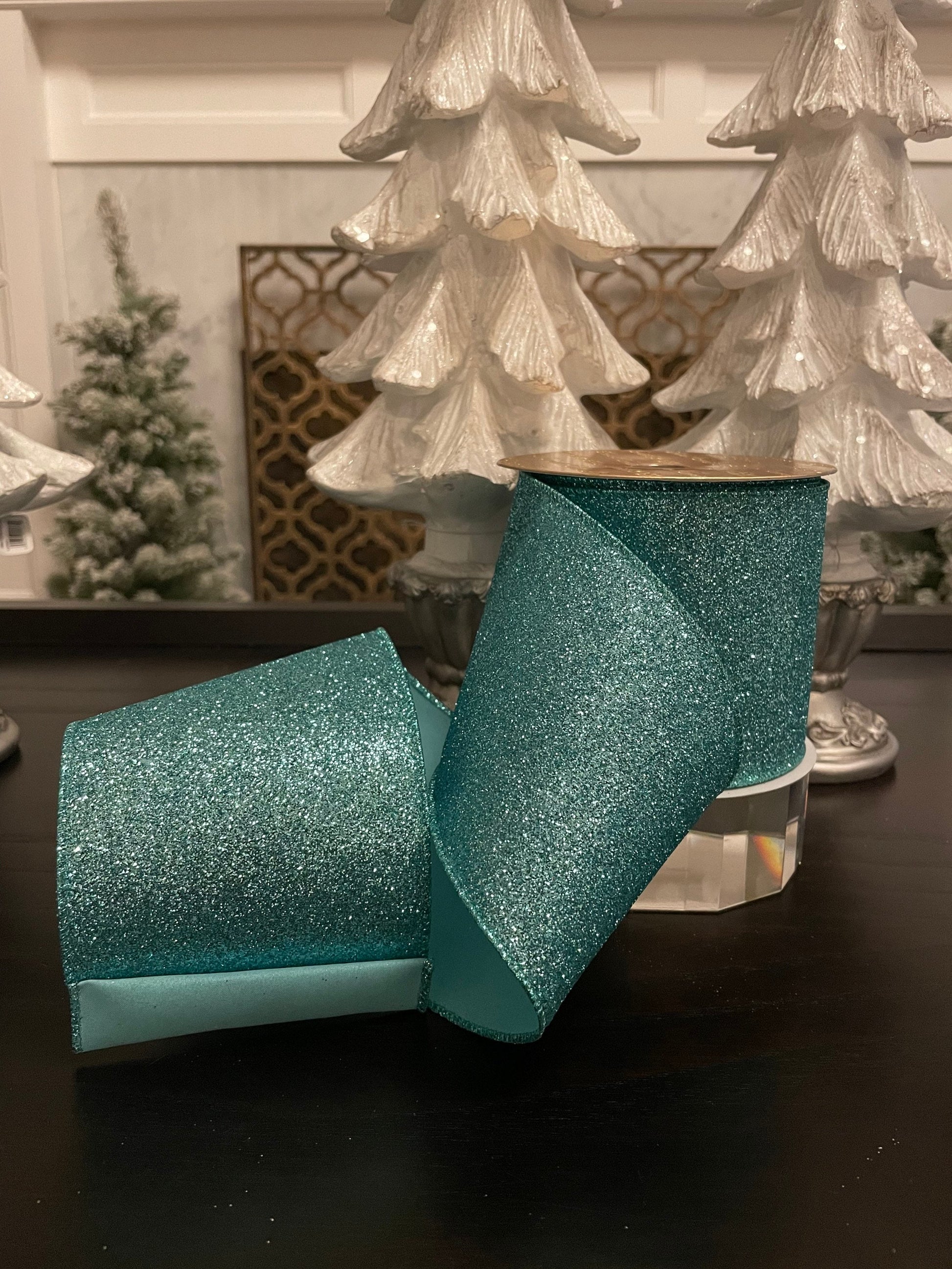 Designer diamond dust dusty blue ribbon. 4”x 10 yards. Wired.*