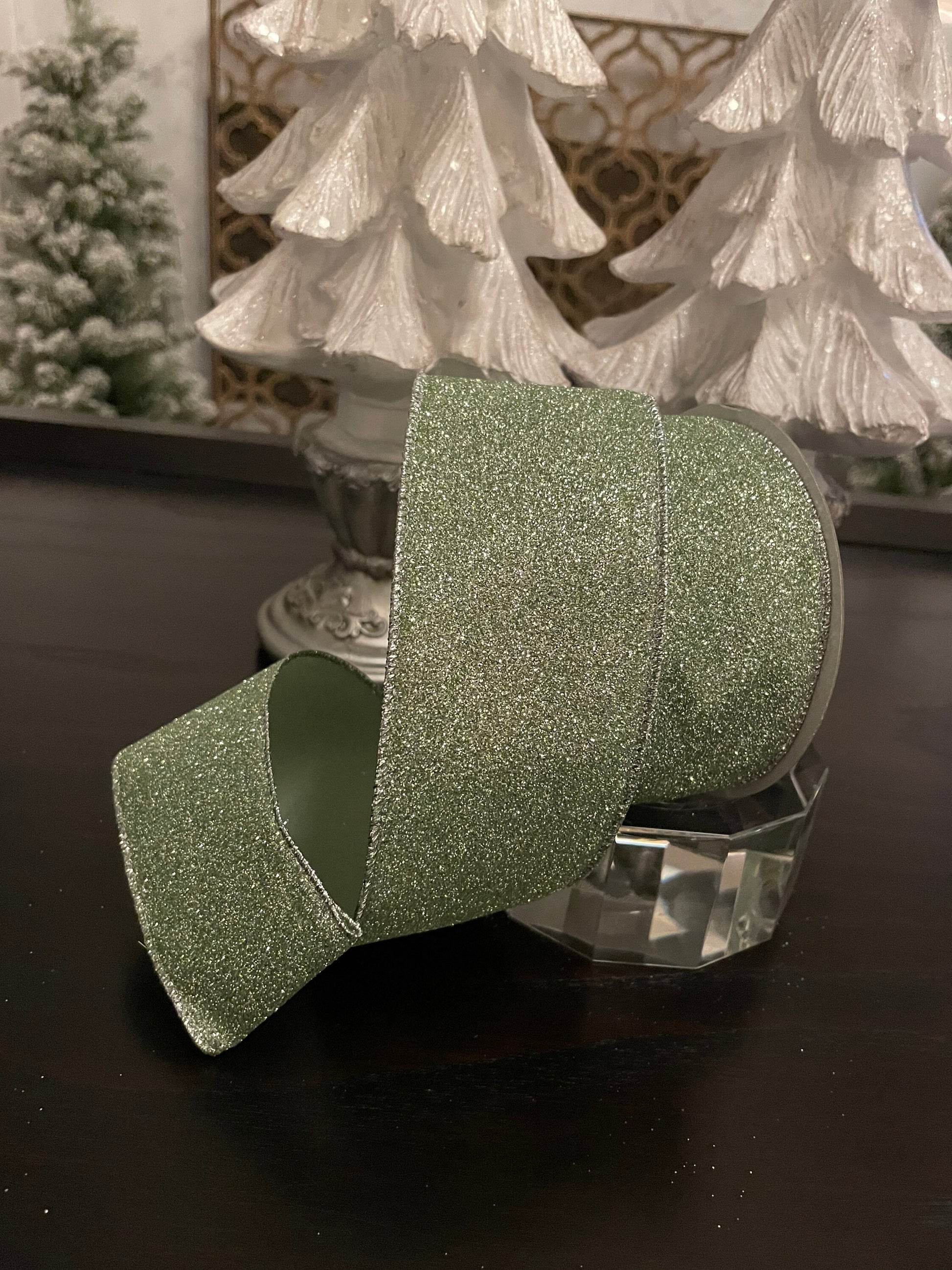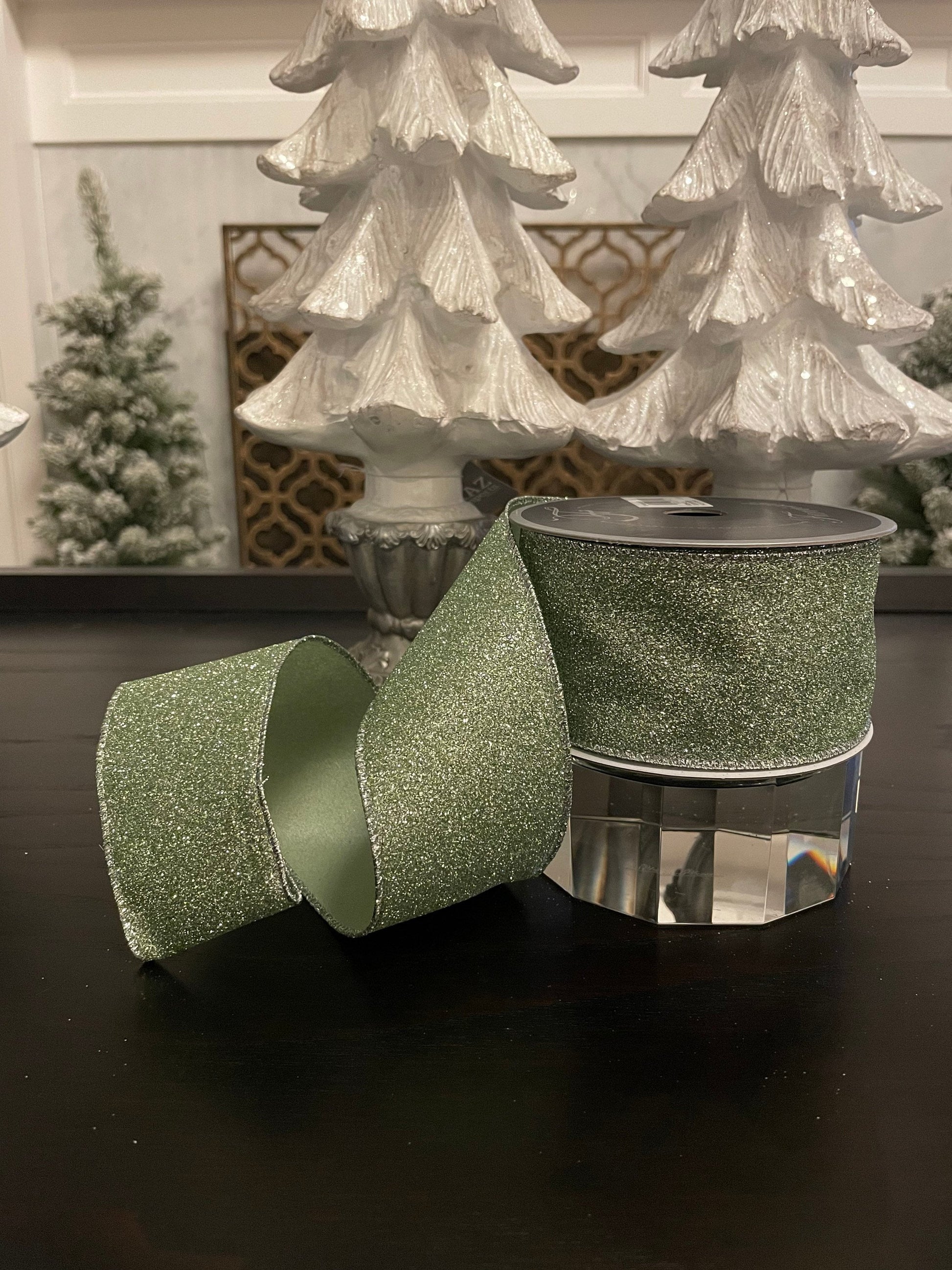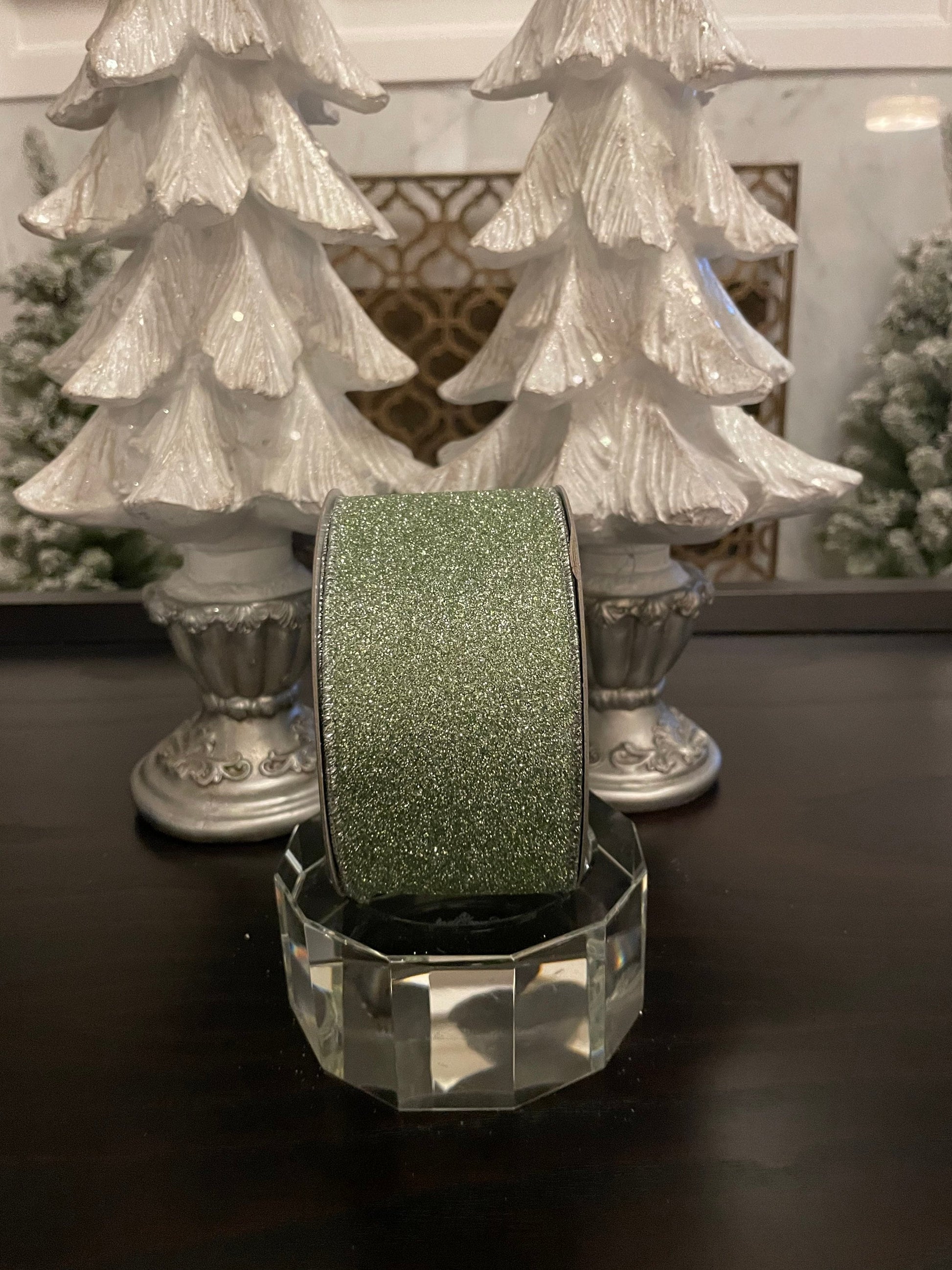 Designer diamond dust mint green ribbon. 2.5” x 10 yards. Wired.