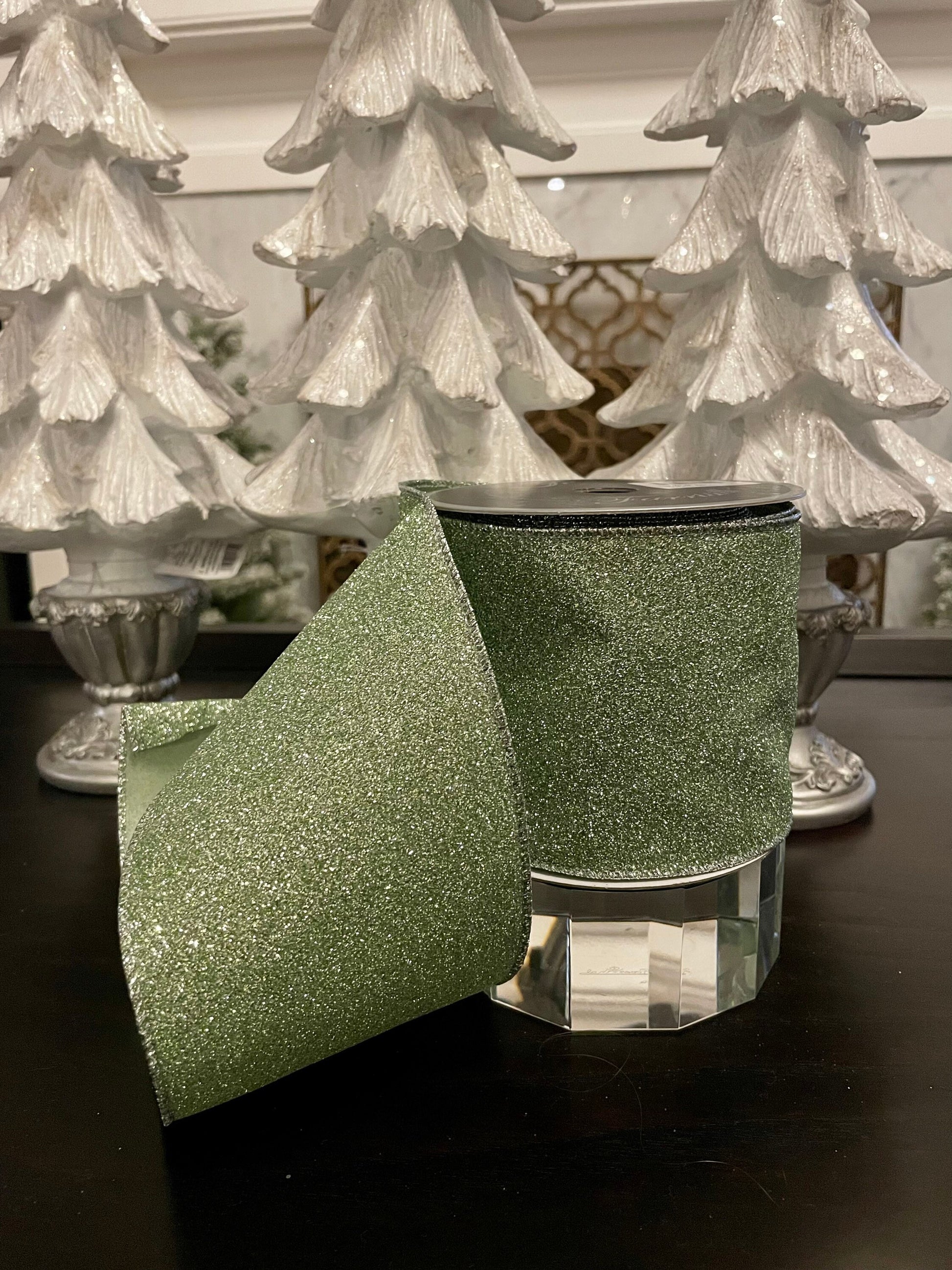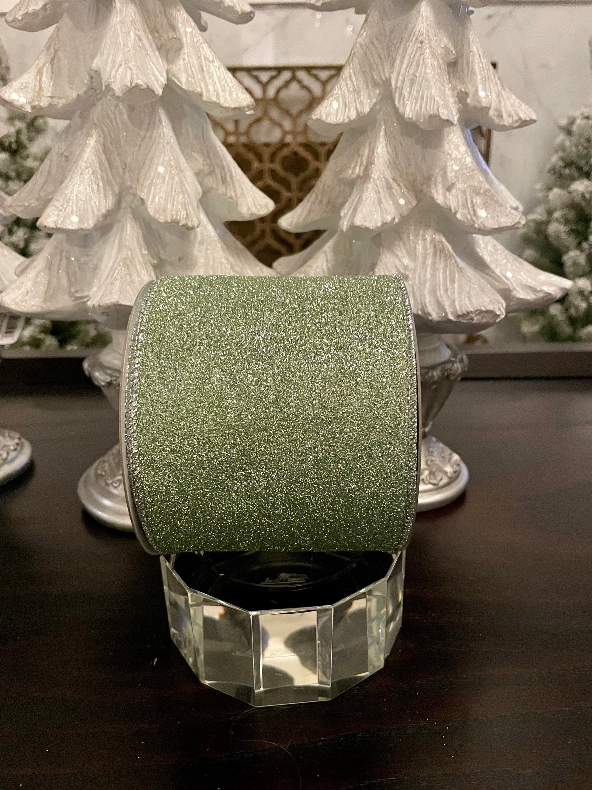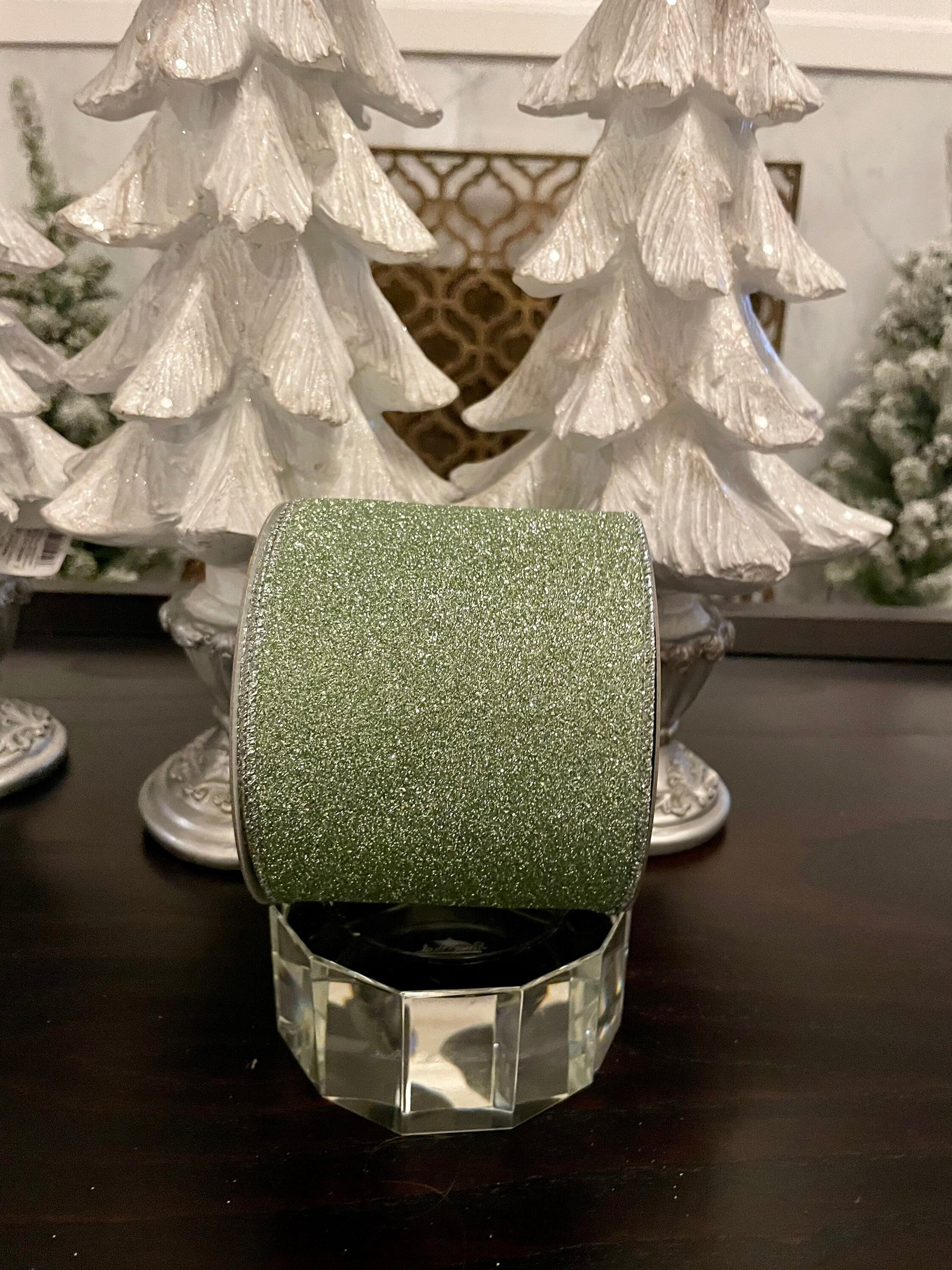 Designer diamond dust mint green ribbon. 4”x 10 yards. Wired.
