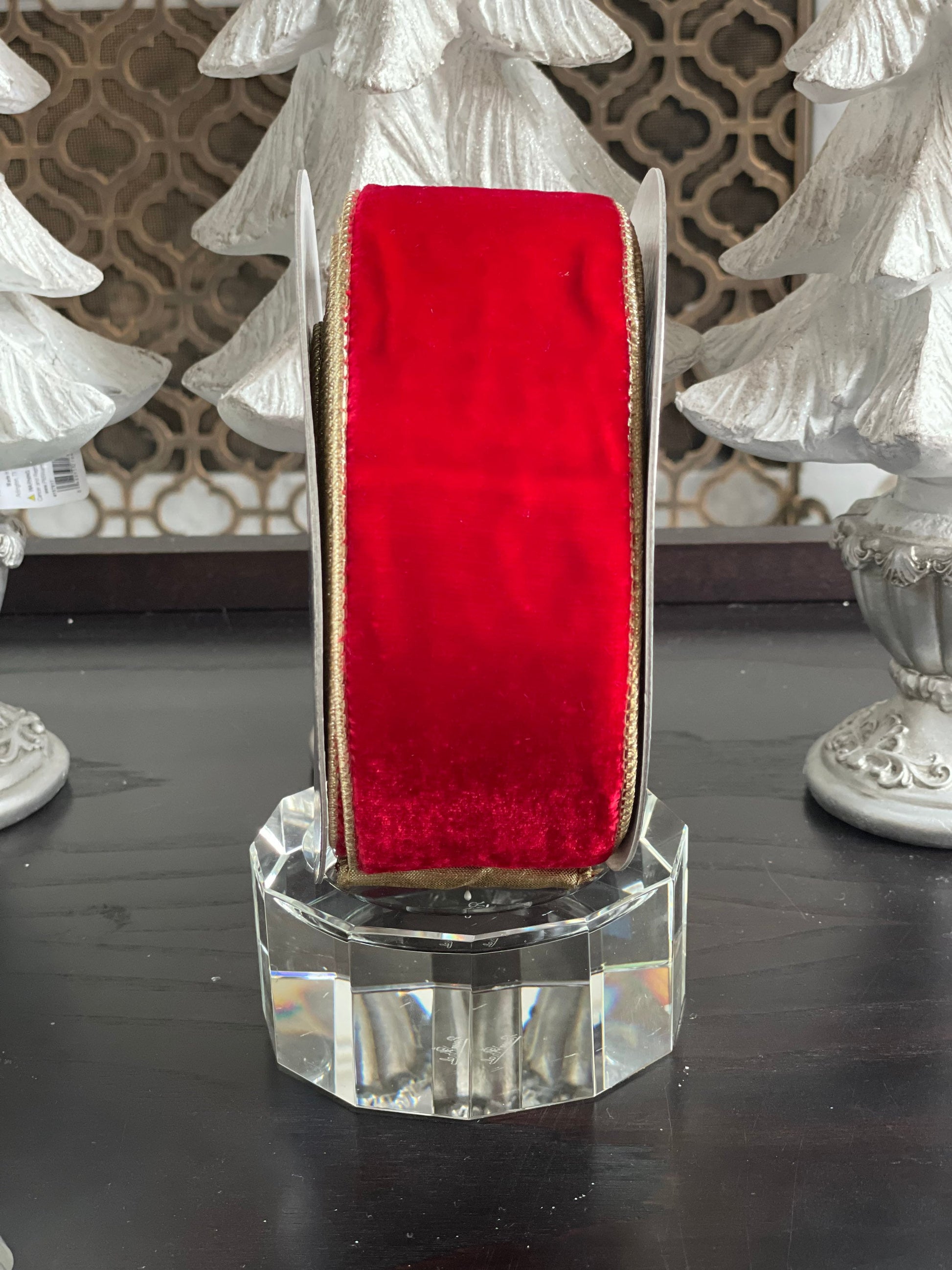 Designer flashy velvet red ribbon. 2.5” x 10 yards. Wired.