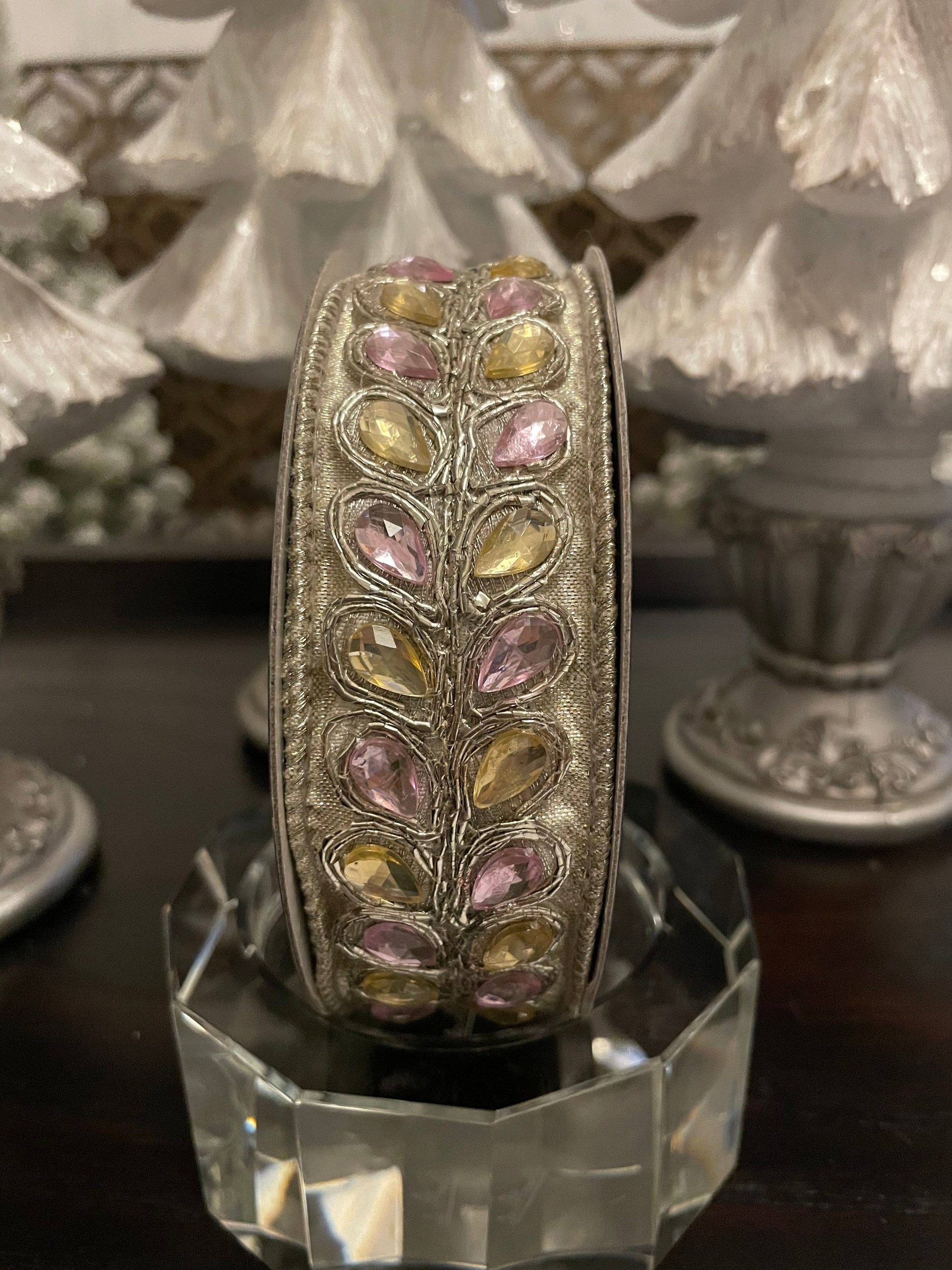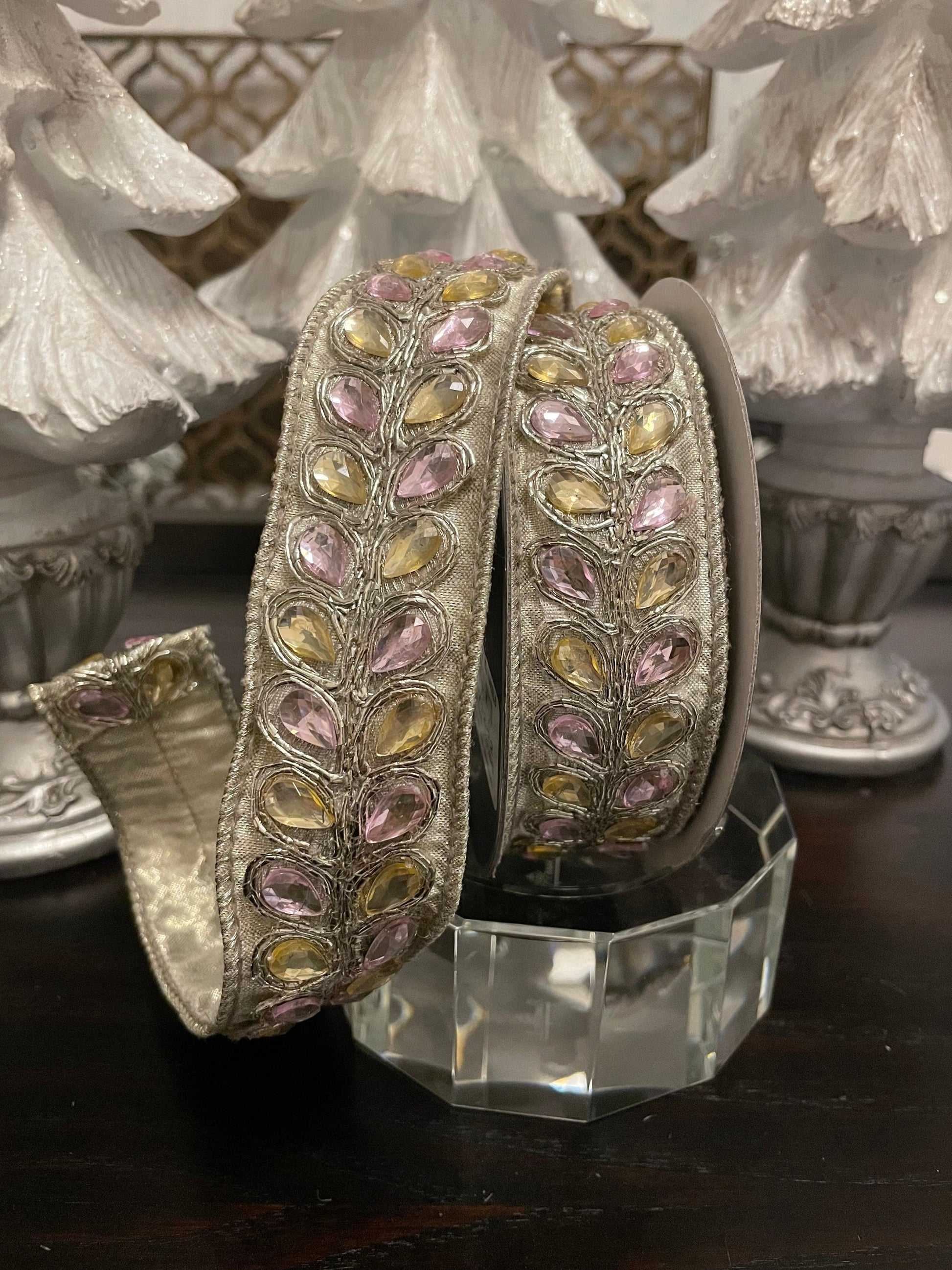 Designer wired pear shape jewel ribbon. 1.25” x 5 yards. Gorgeous!*
