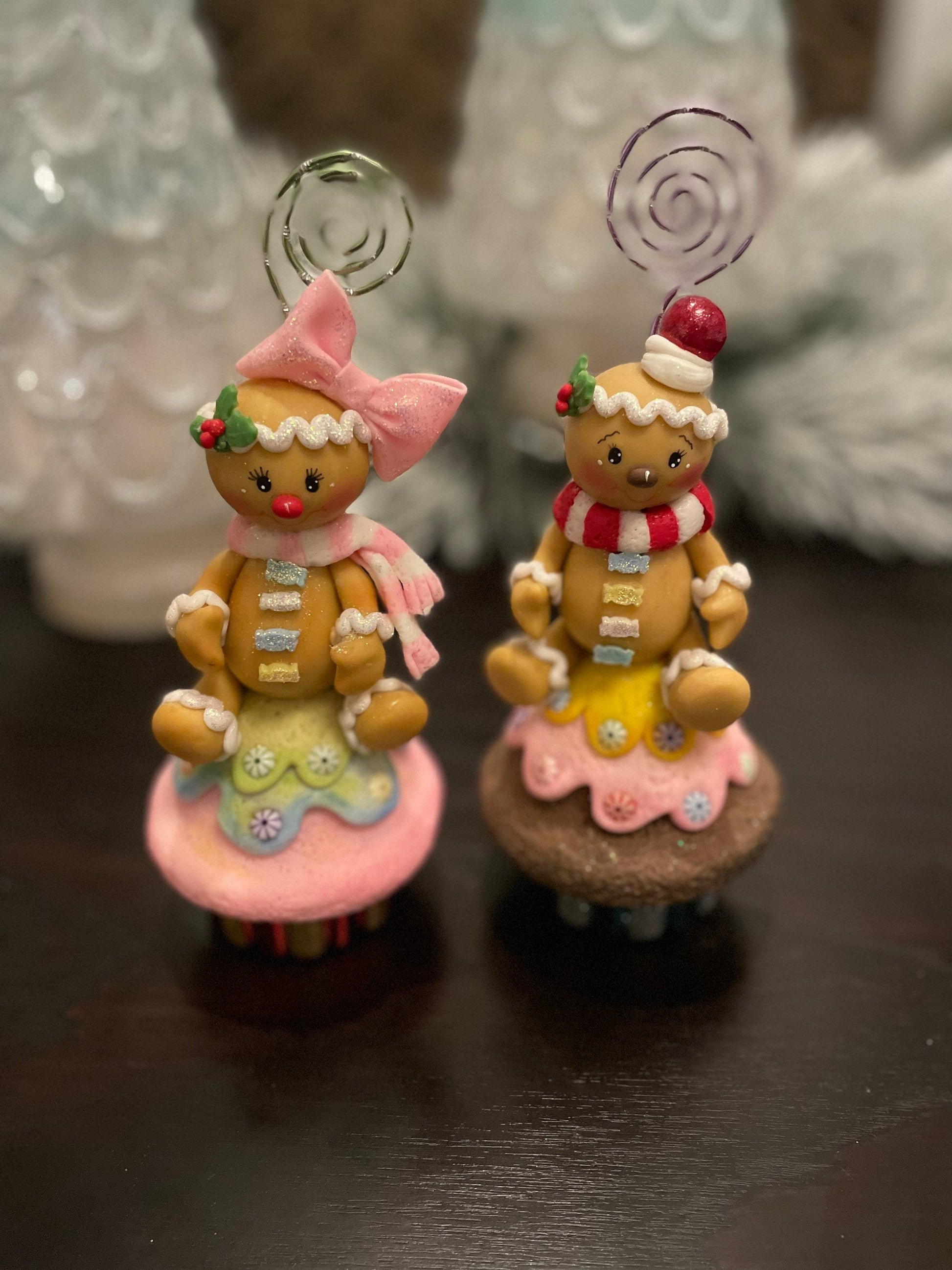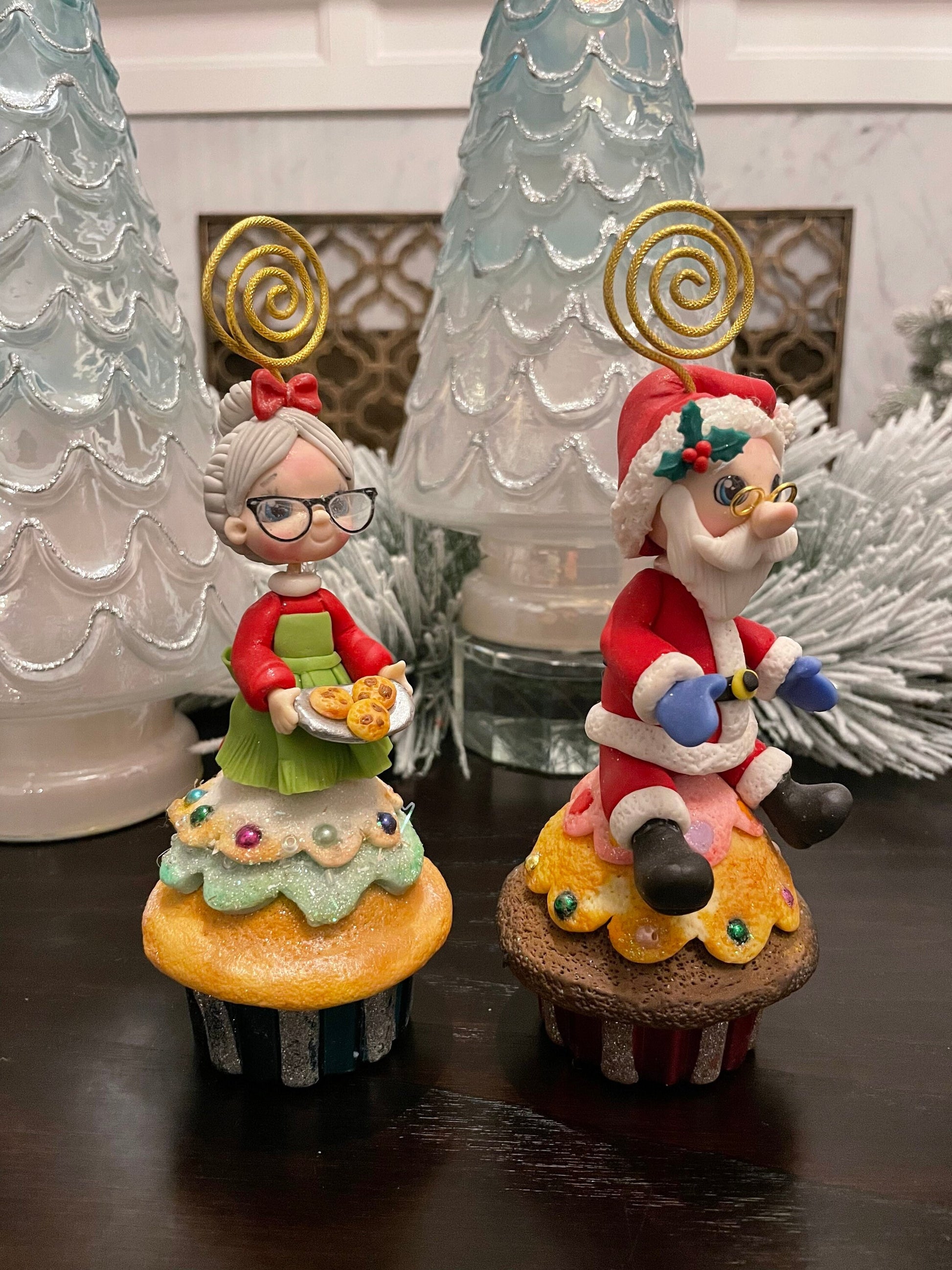 Handmade Cupcake set of 6. Cupcake place card holder. Cupcake Santa, Gingerbread and snowman. Polymer clay. Handmade.