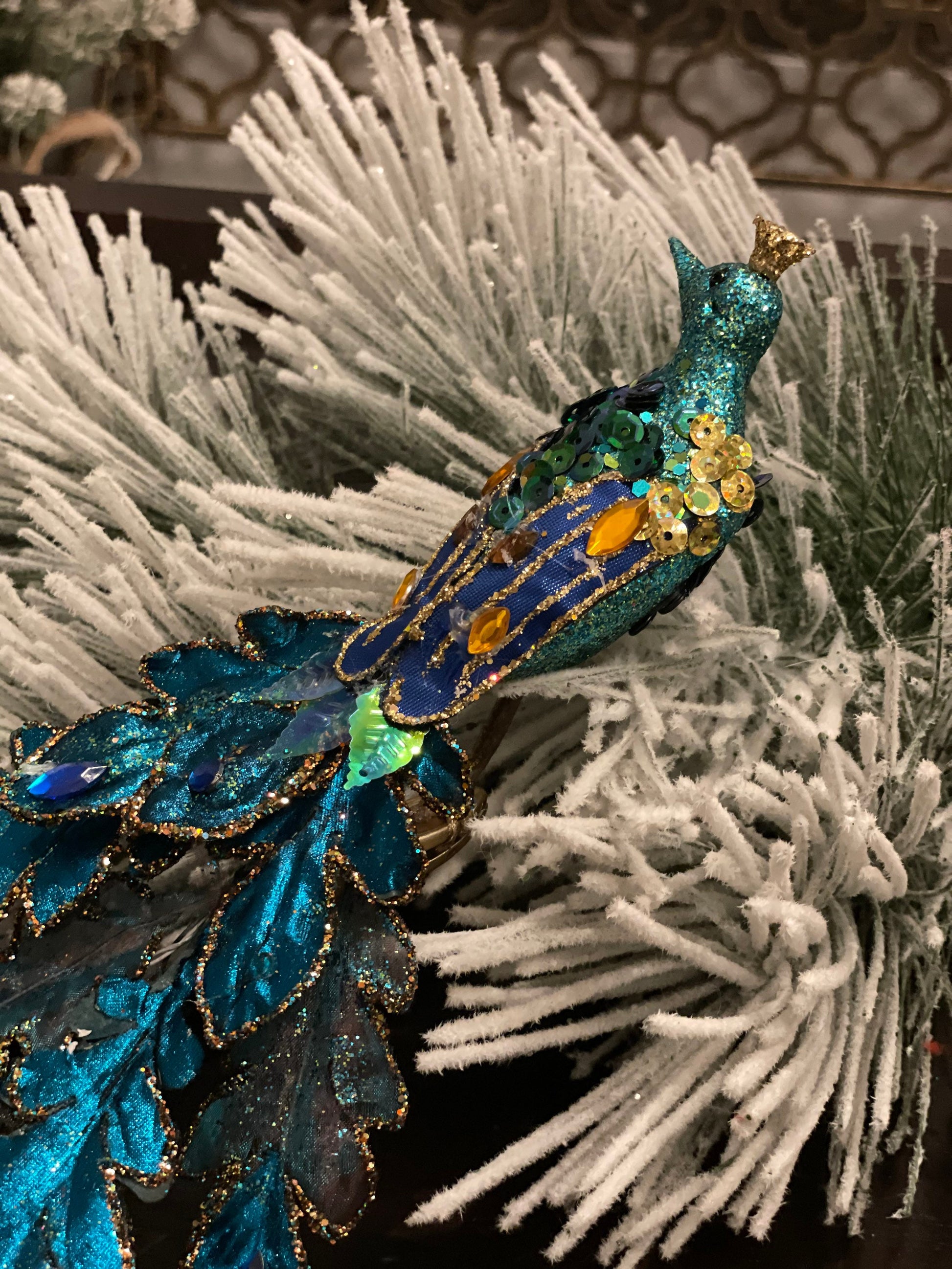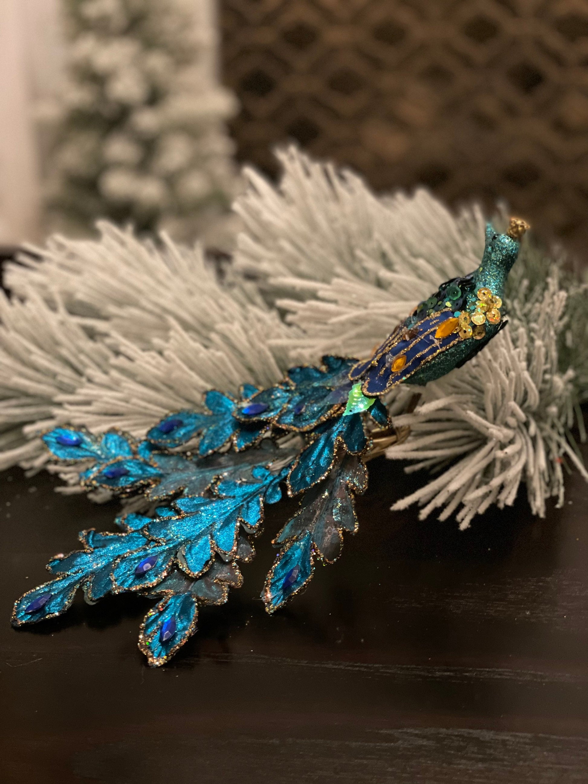 Peacock Ornament with Teal Clip