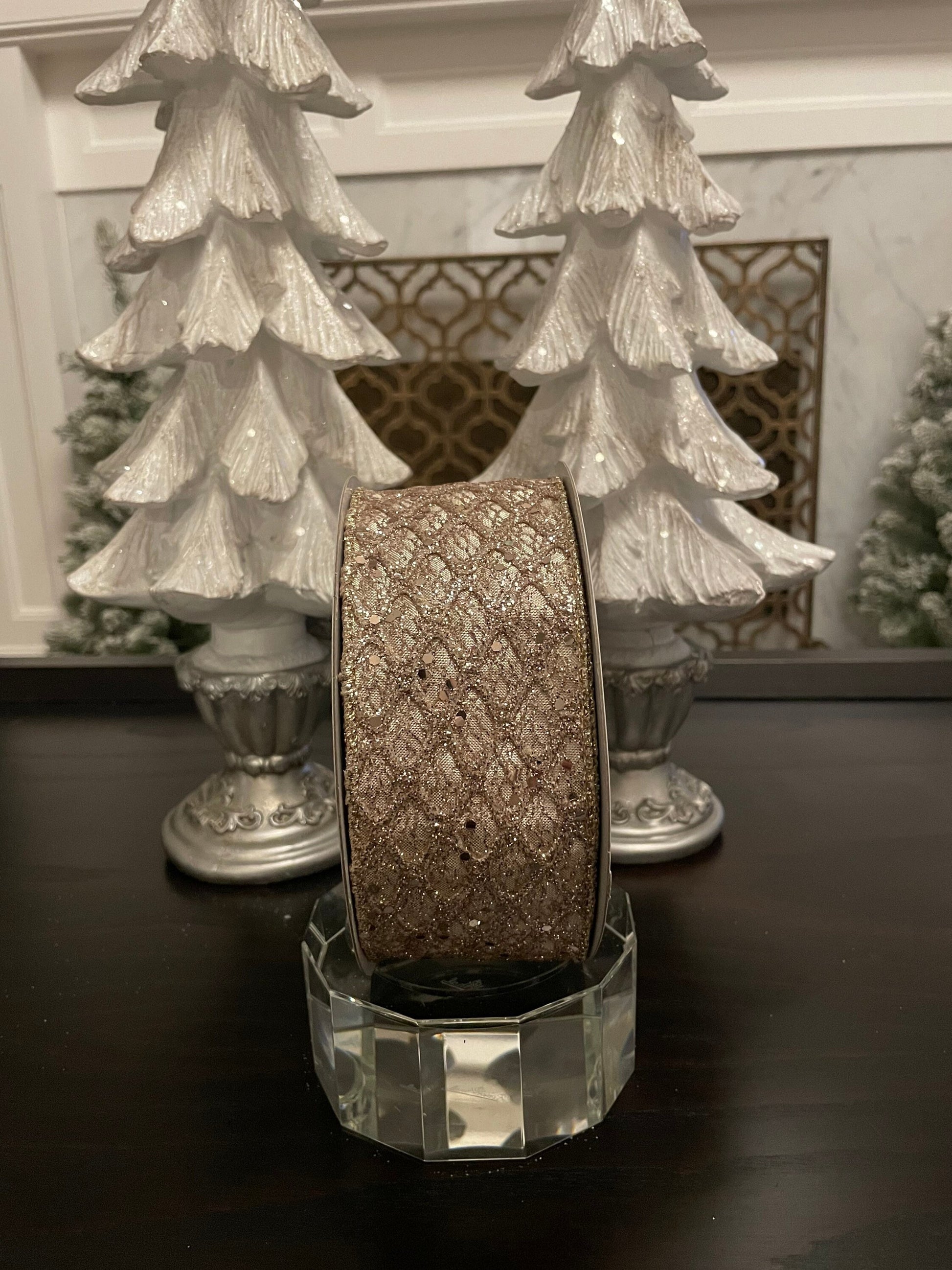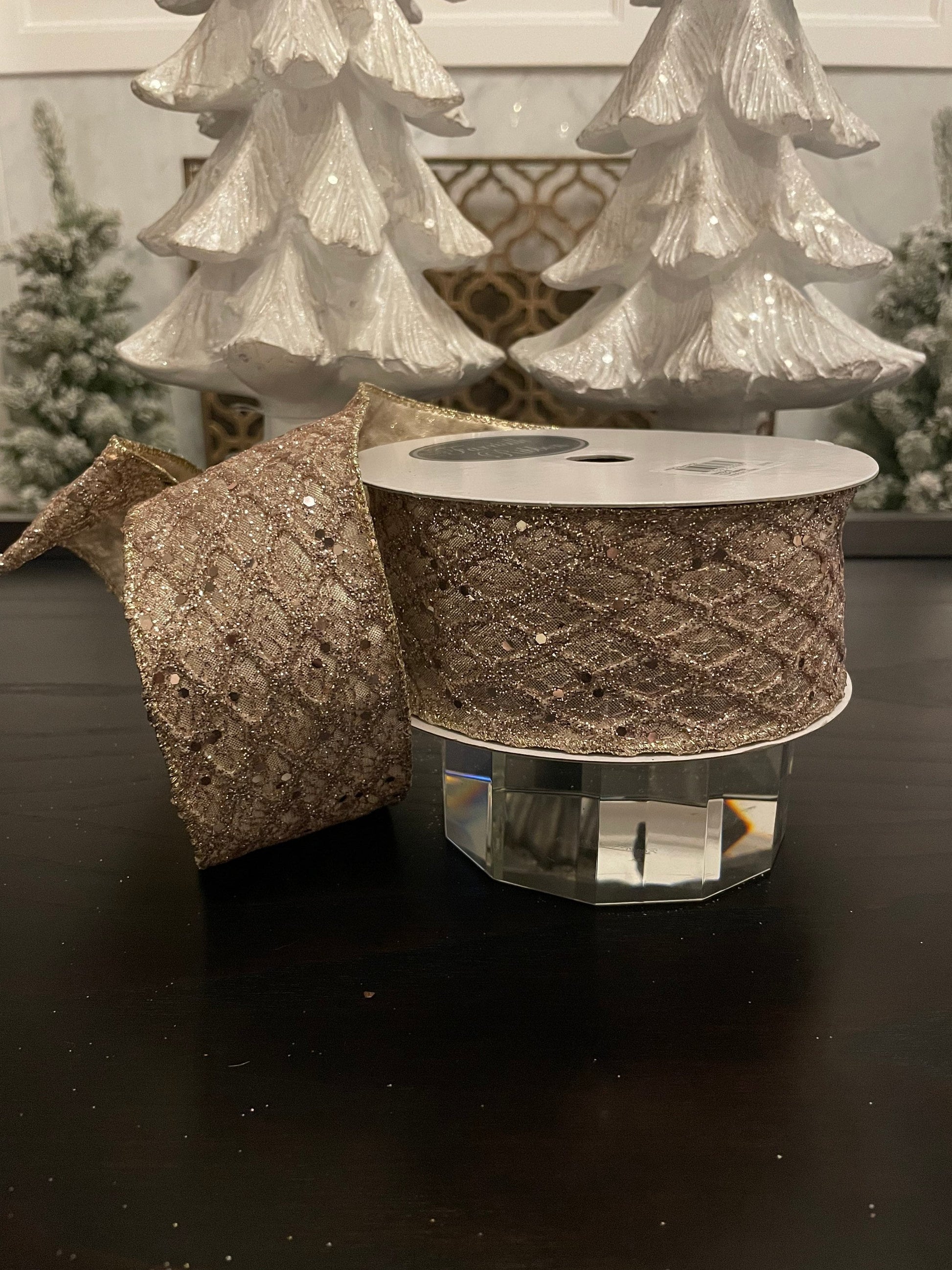 Retro diamonds champagne ribbon. 2.5”x 10 yards. Glittery.Wired.*