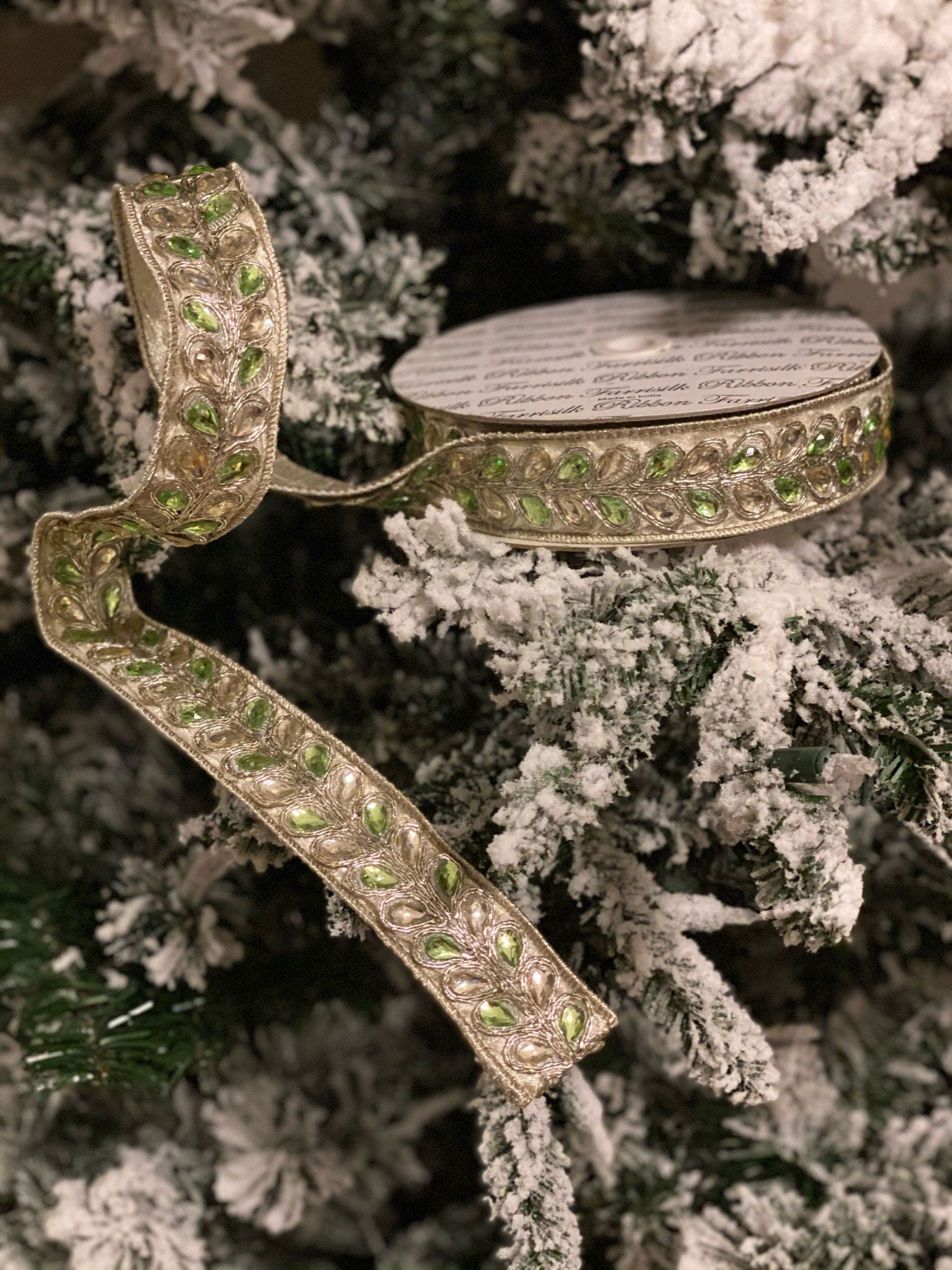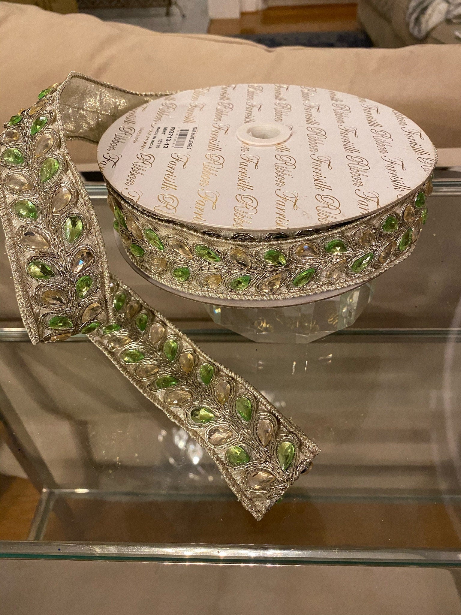 Ribbon 1.25 x 10 yds. Ribbon with Pear Shape Jewels, Mint. Farrisilk. Designer ribbon.*