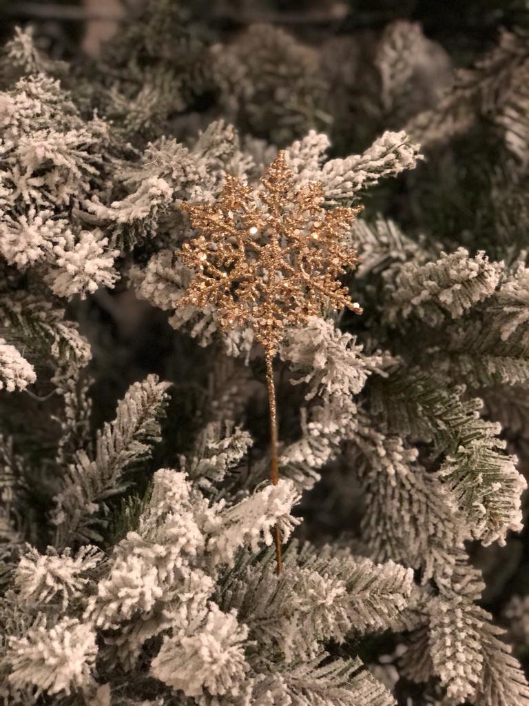SET of 12. 10"plastic glitter snowflake pick (4"diameter) gold