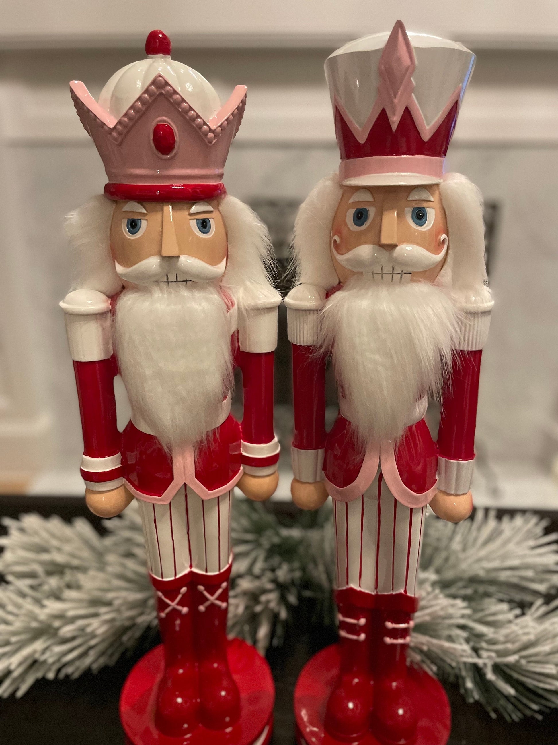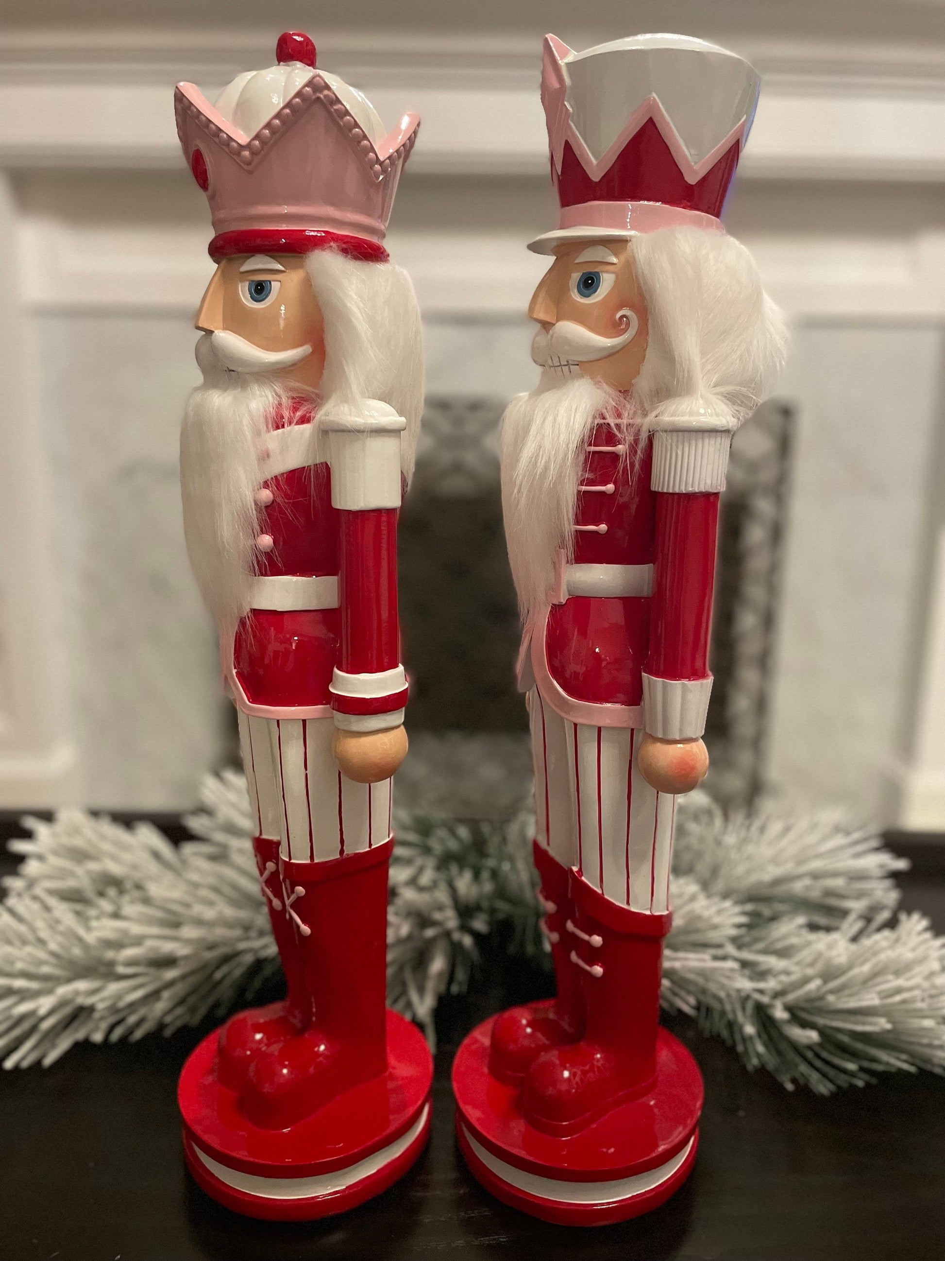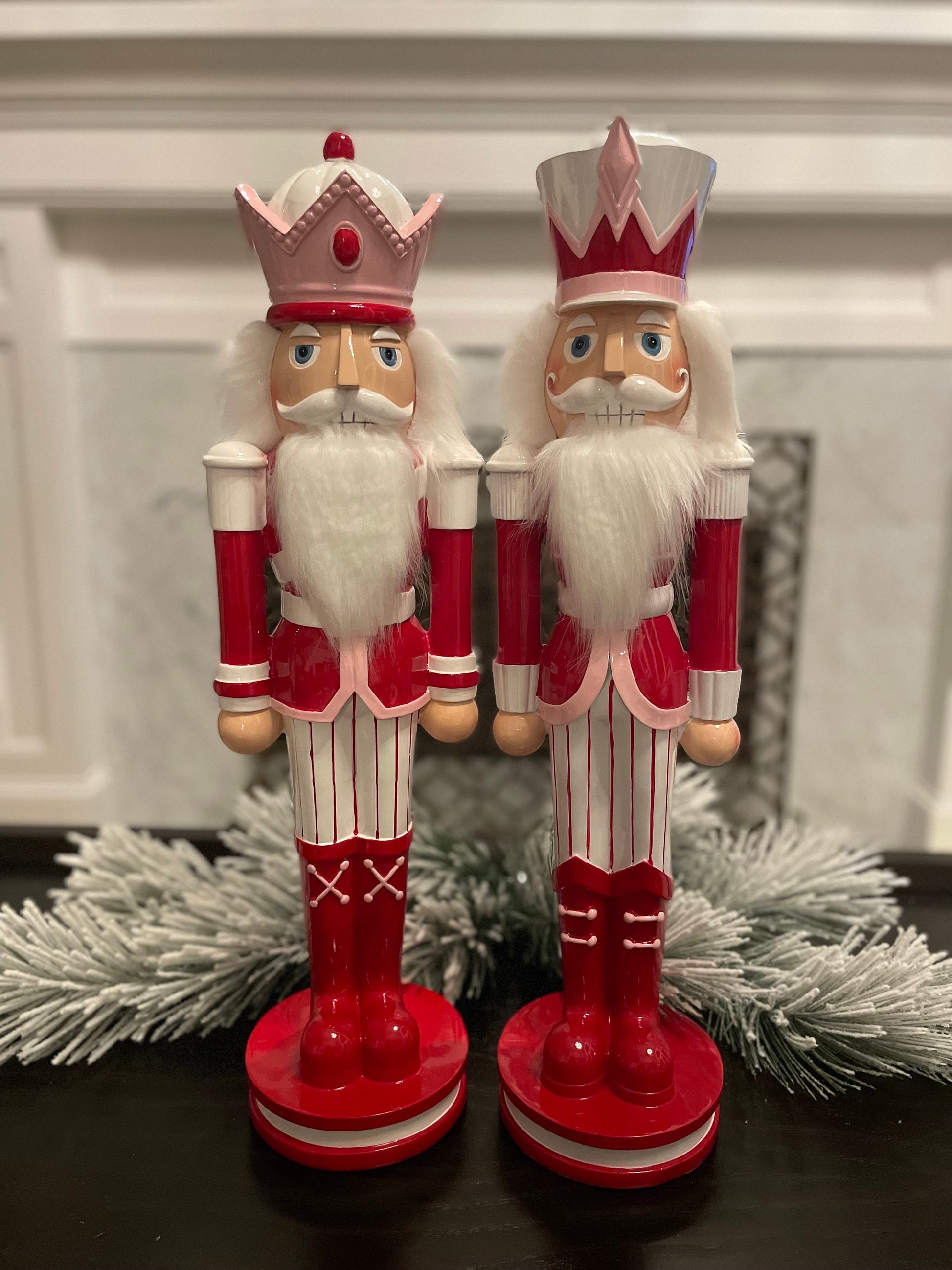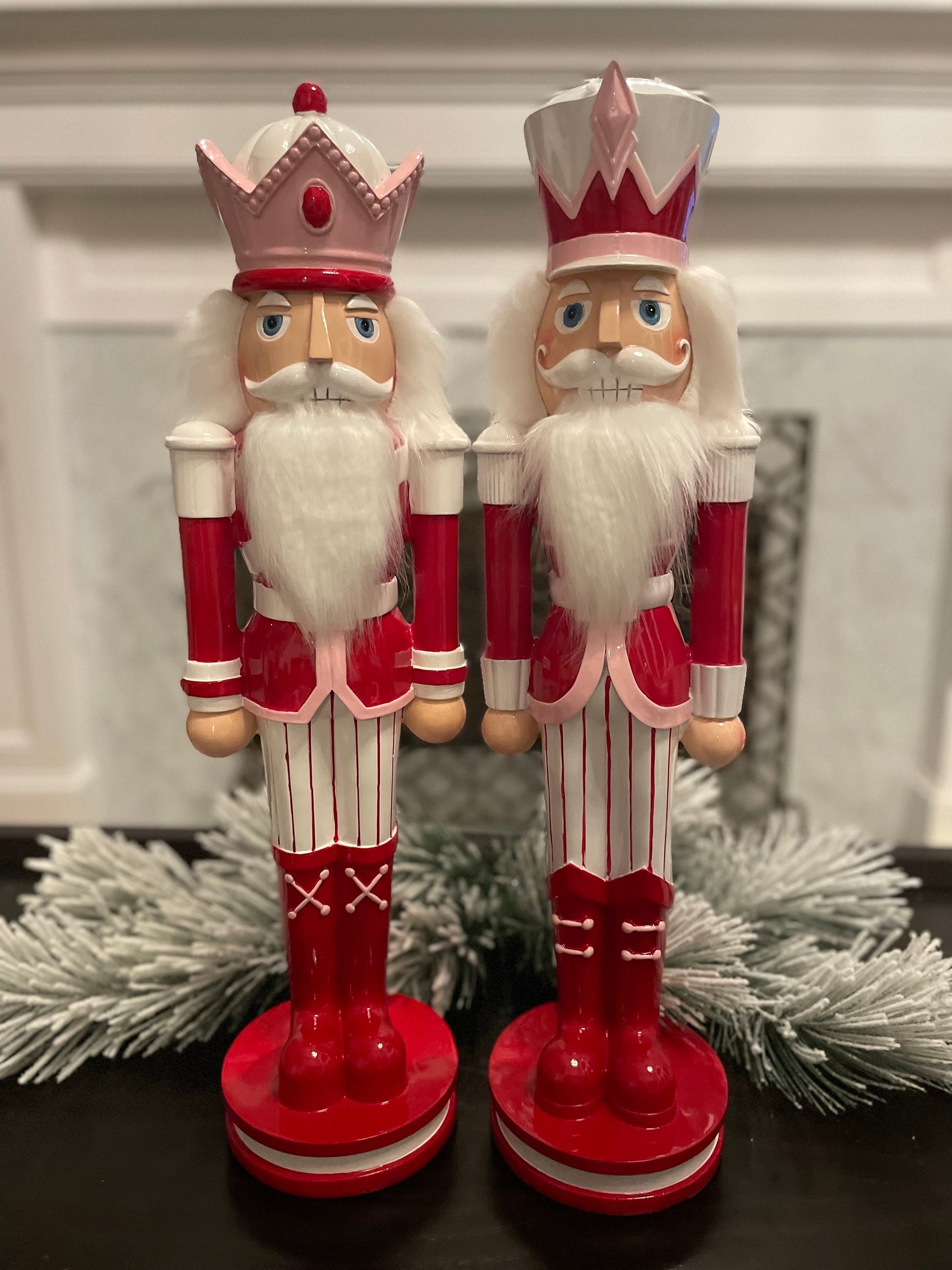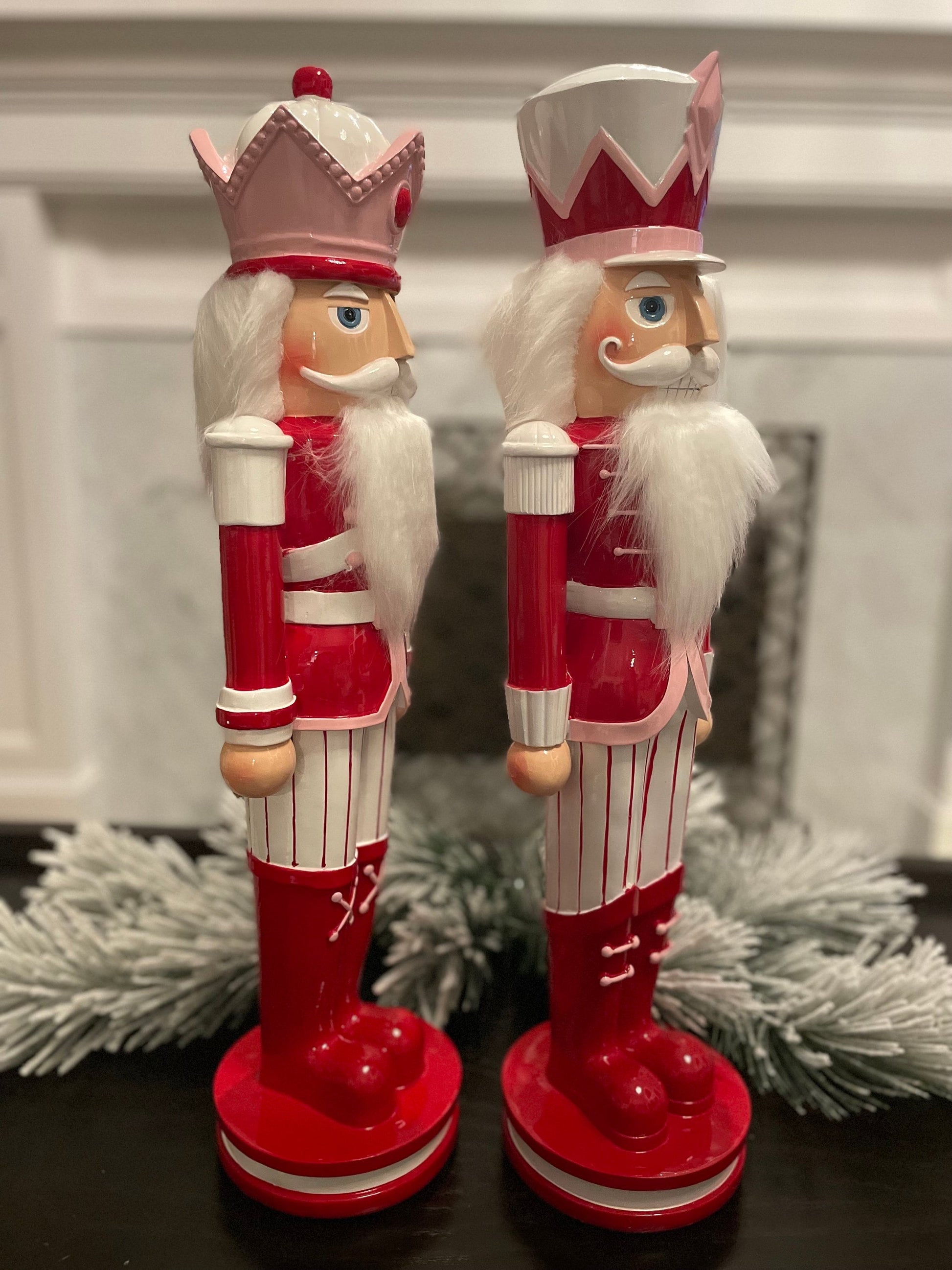 Set of 2. 23.75” Peppermint Nutcracker. Pink. Resin.