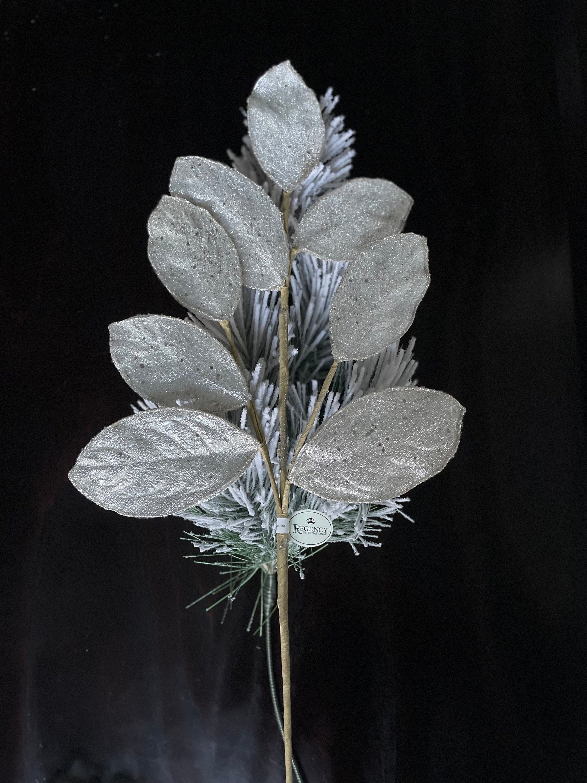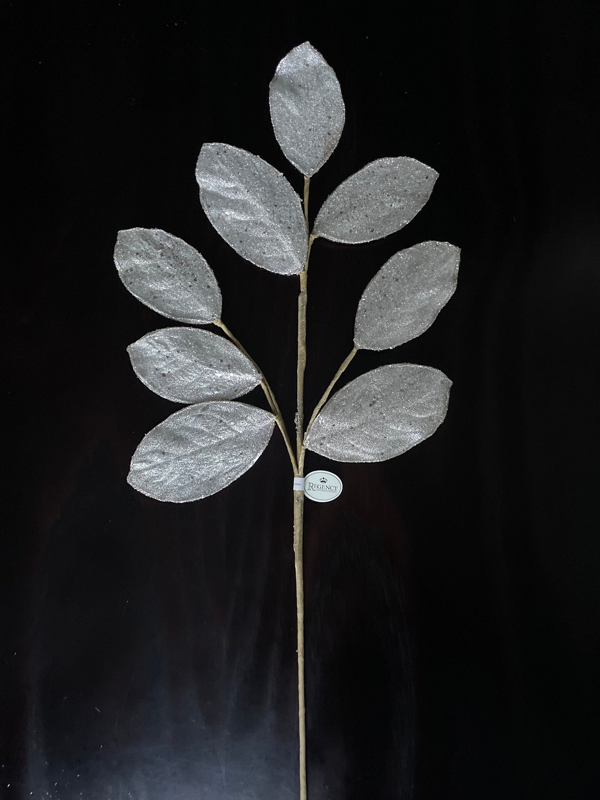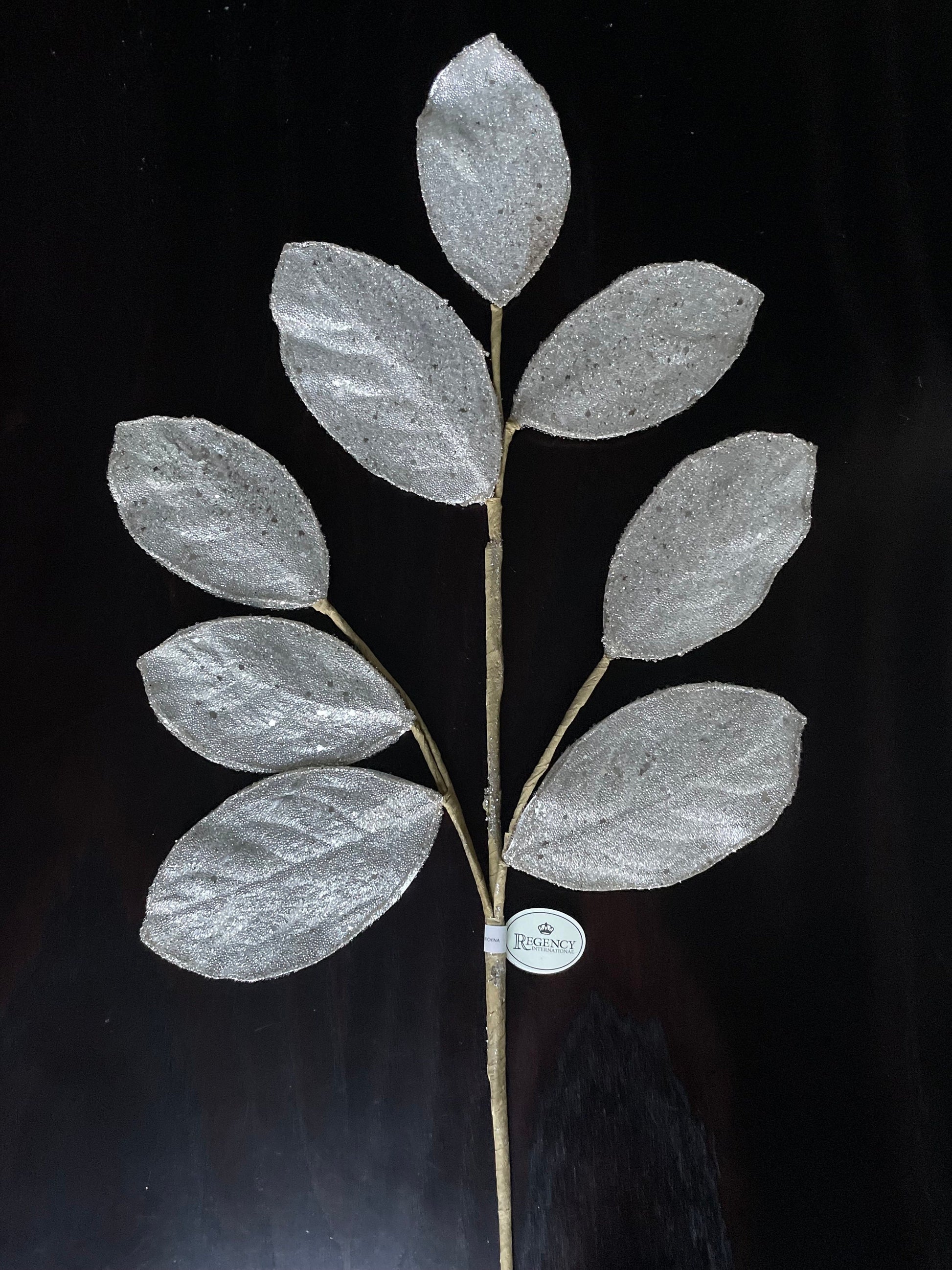 Set of 2. 28" Magnolia leaf spray. Platinum . Micro beaded and sequins. Set of 2.