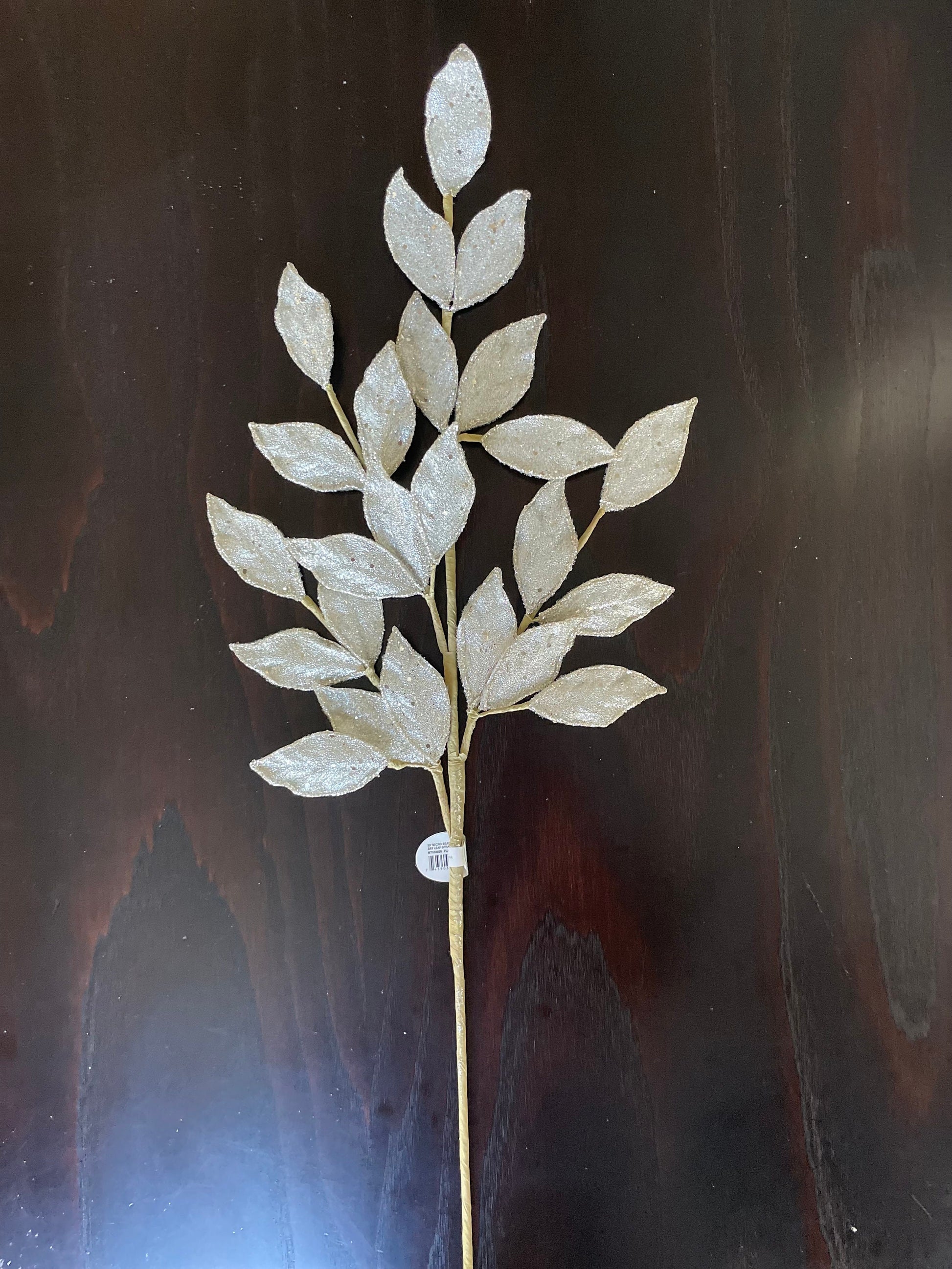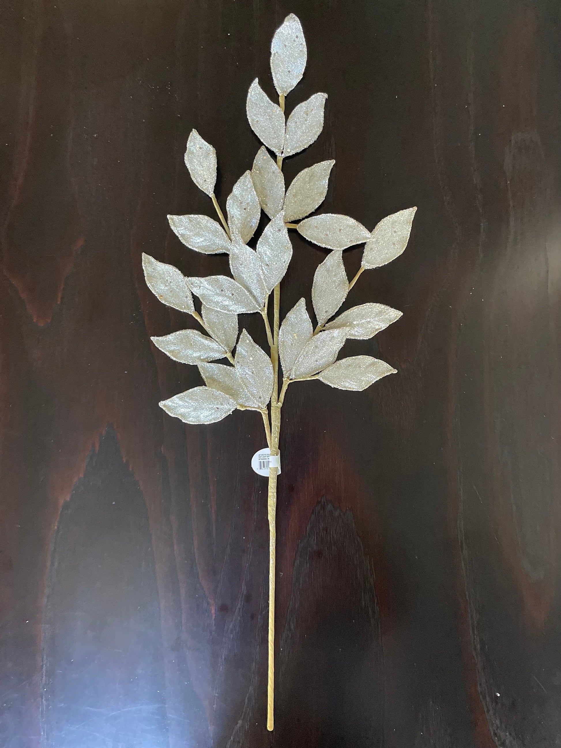 Set of 2. 29” Bay leaf spray, micro beaded sequins. Platinum.