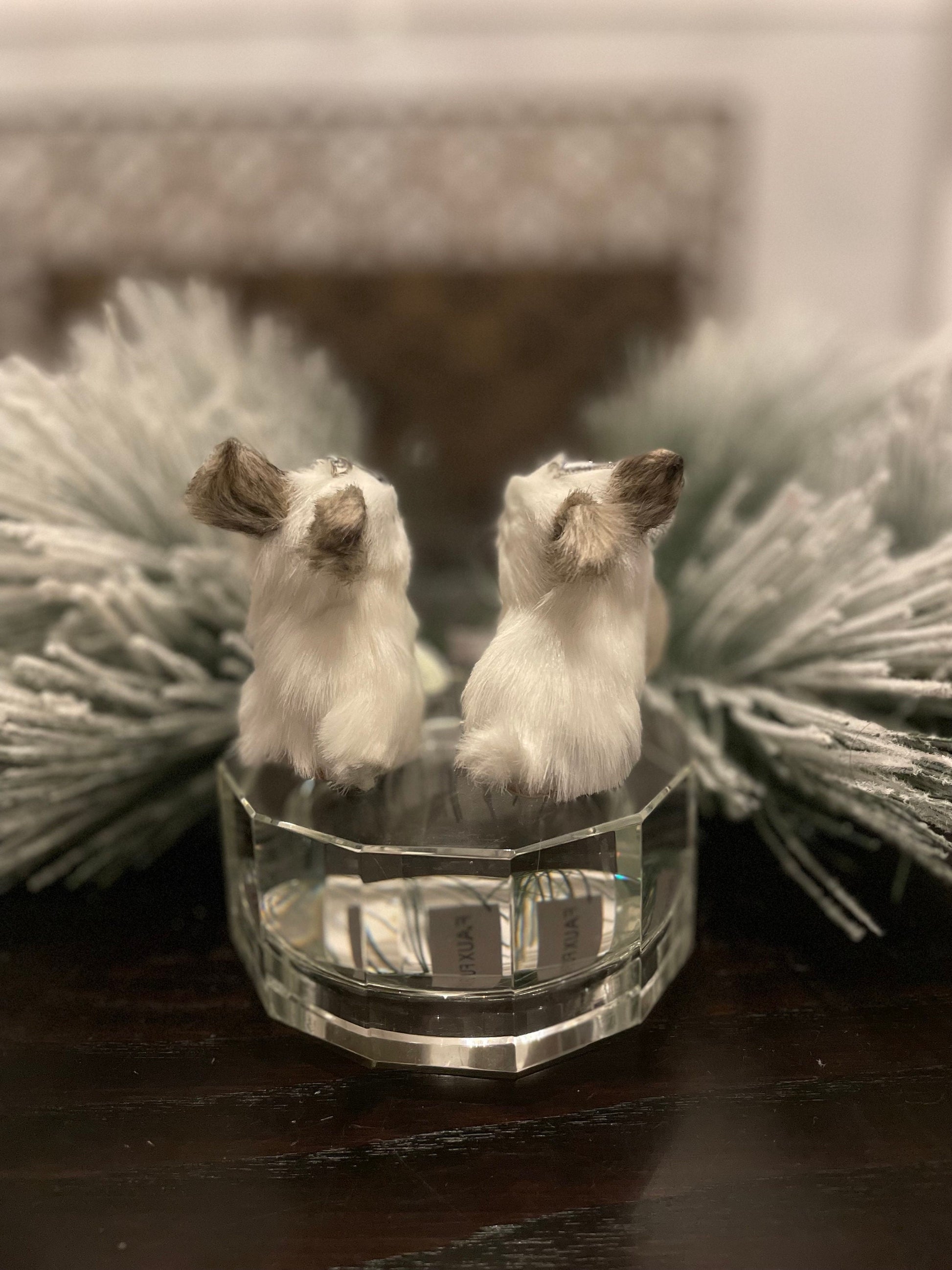 Set of 2. 3” Fur rabbit ornament. Forest animal.