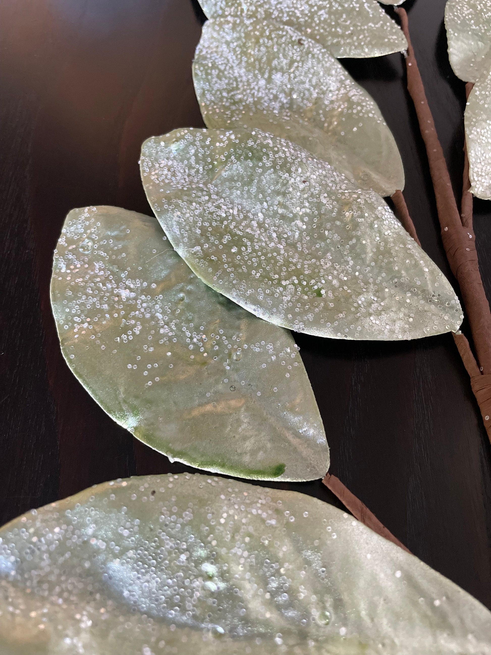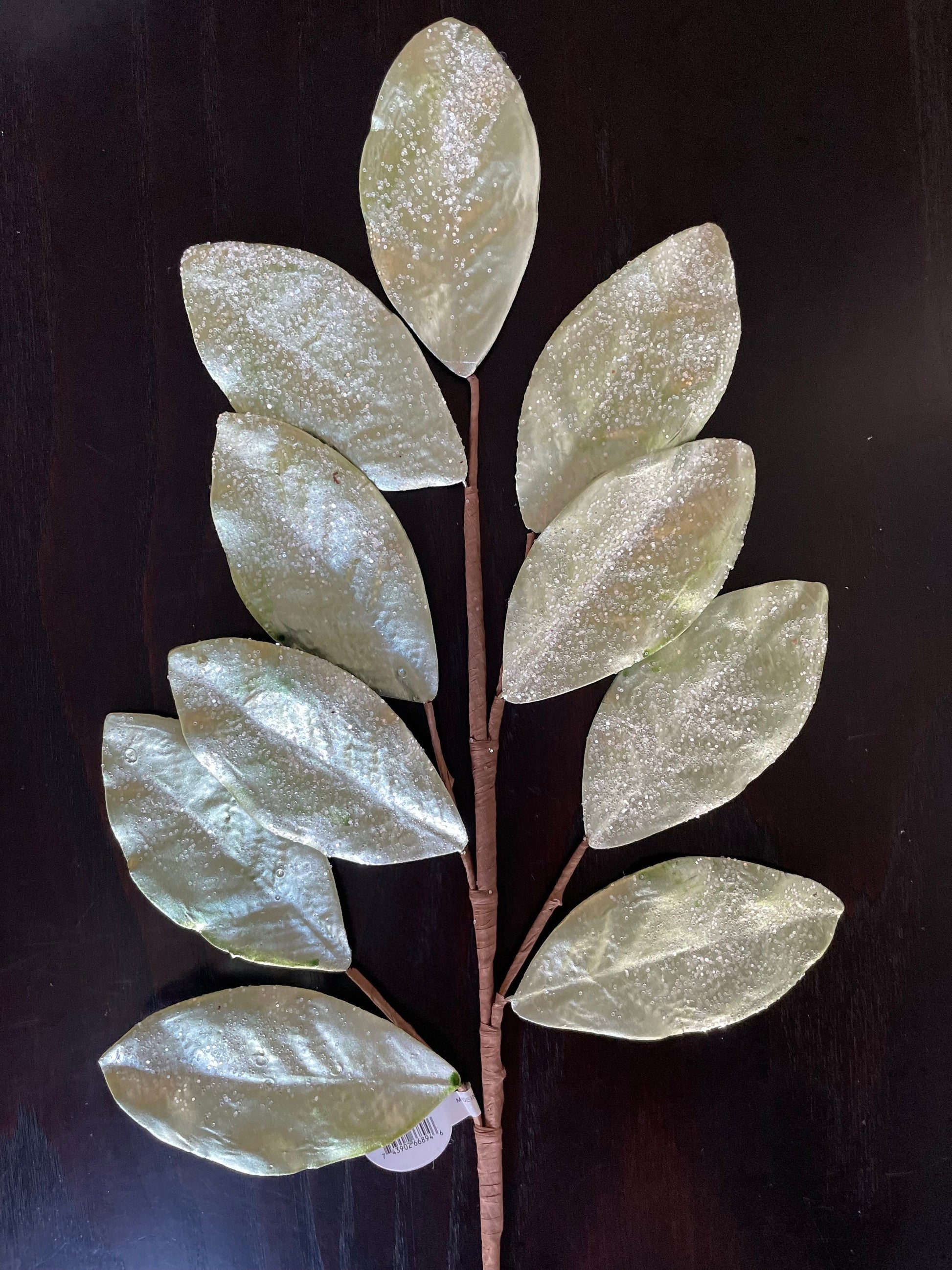 Set of 2. 30" Glitter metallic Magnolia leaf spray. Aqua.