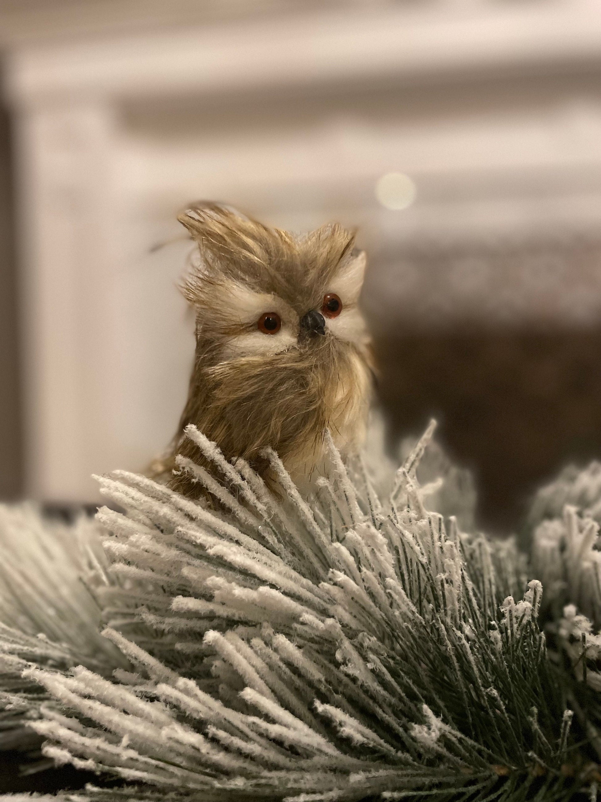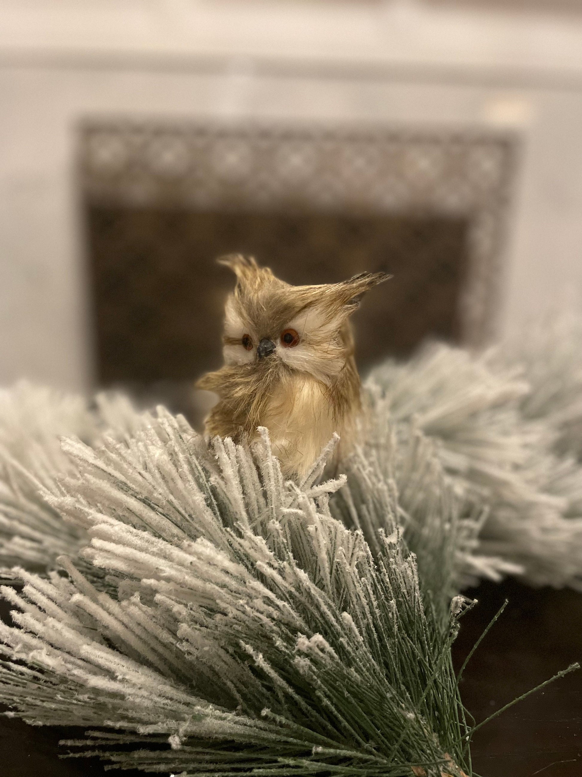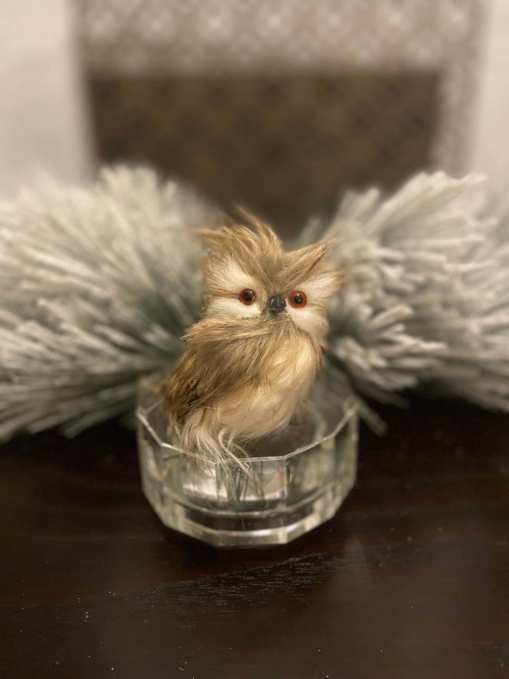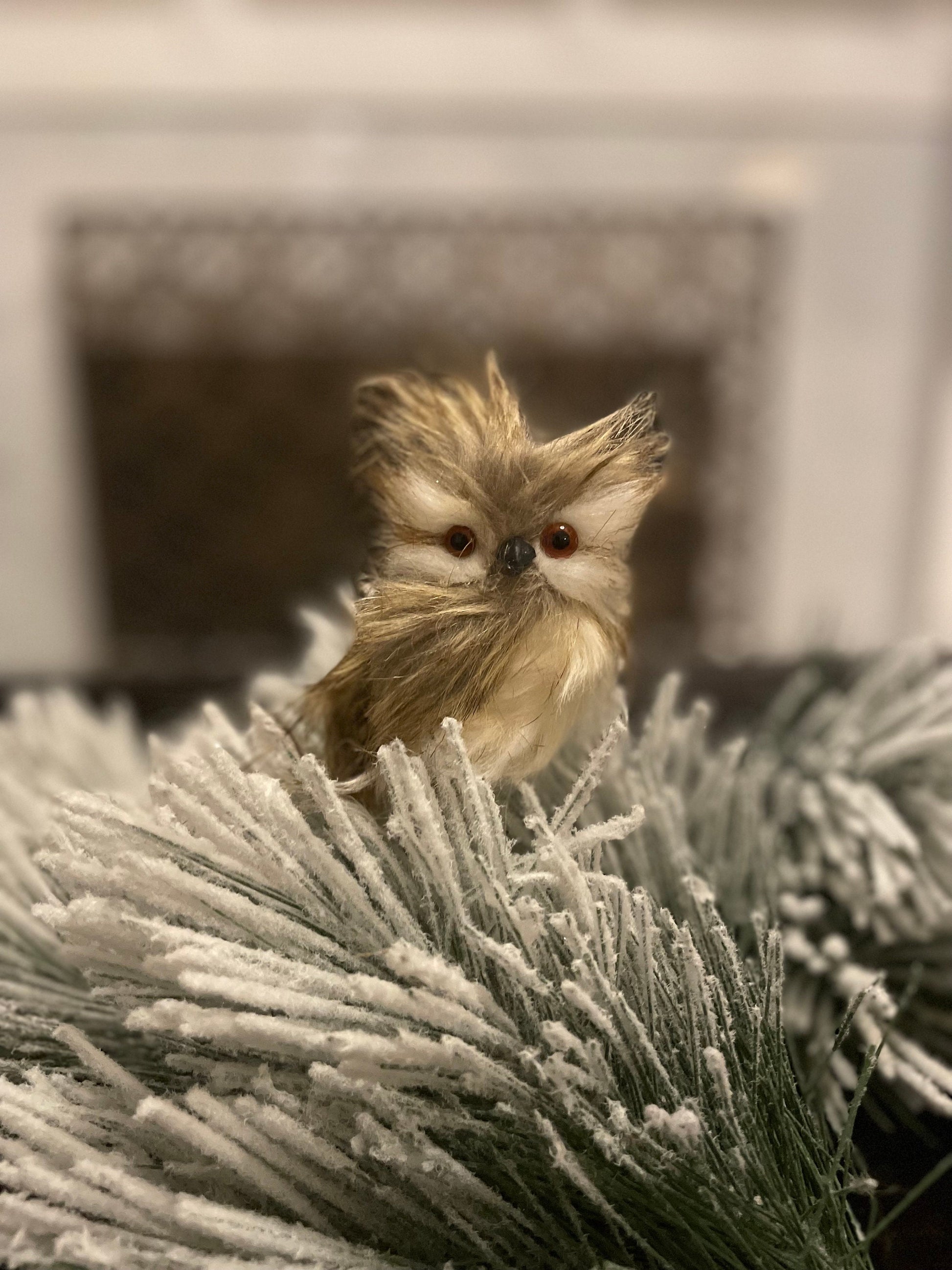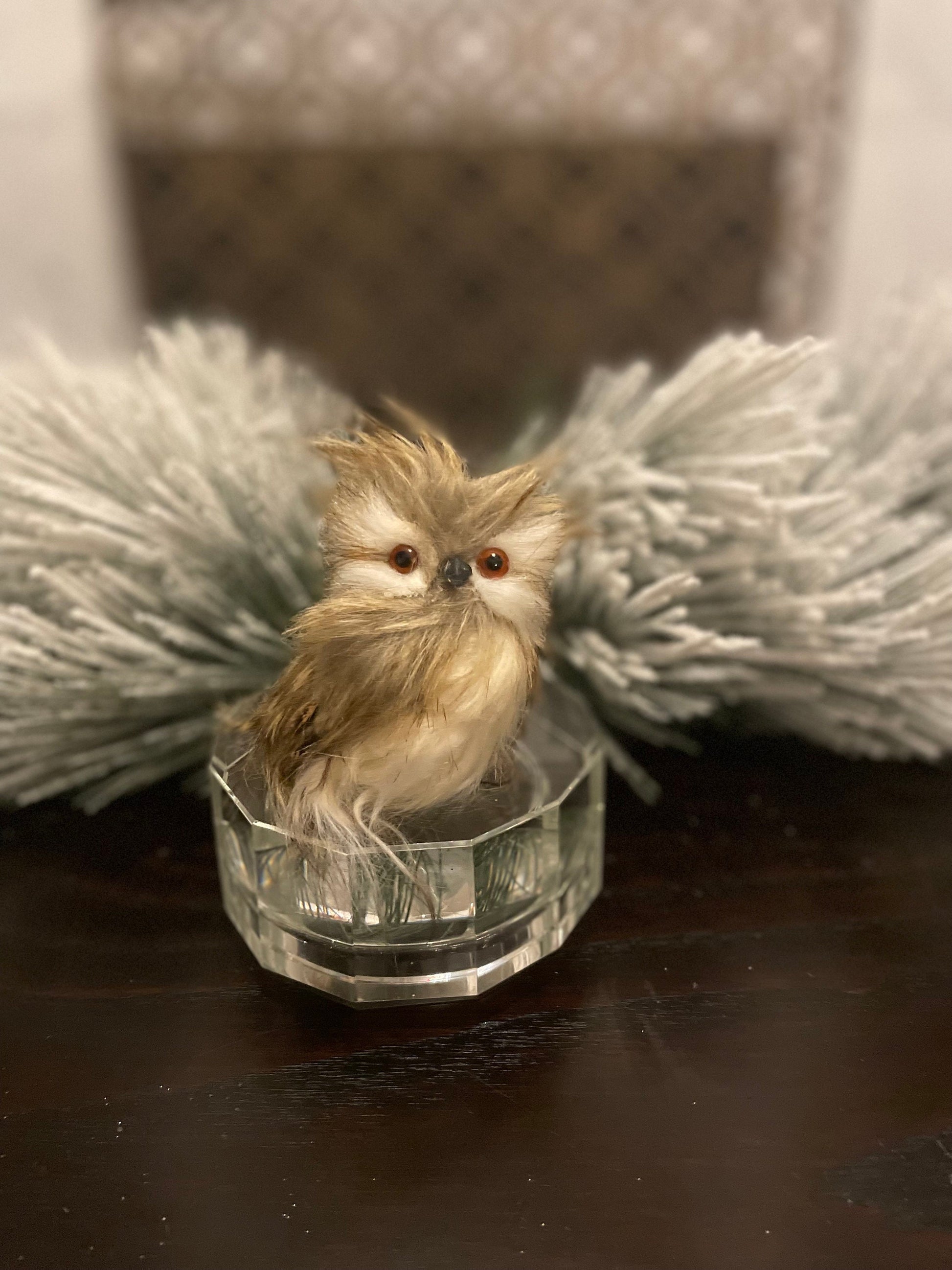 Set of 2. 4.5” Speckled feather owl ornament. Lightweight.