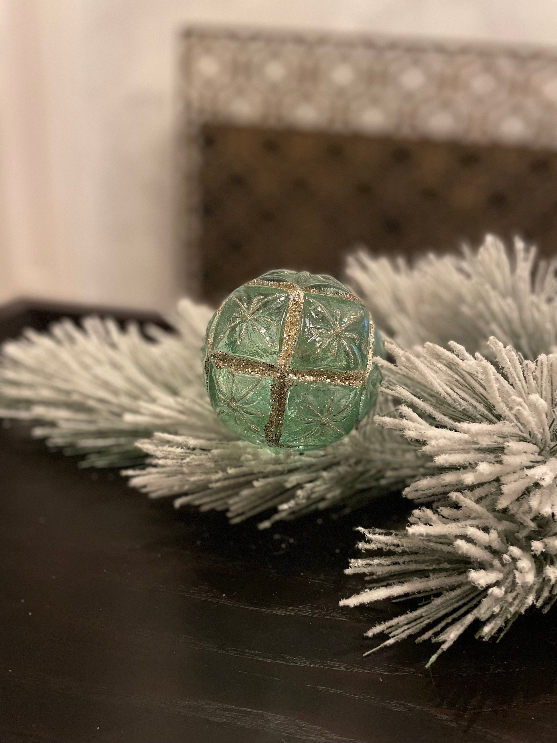 Set of 2. 4" glass clear starburst. Aqua and gold.
