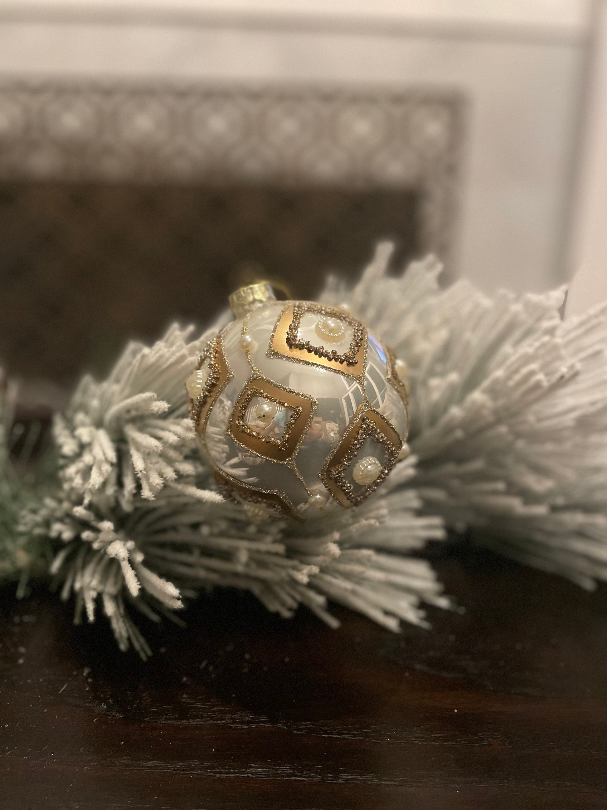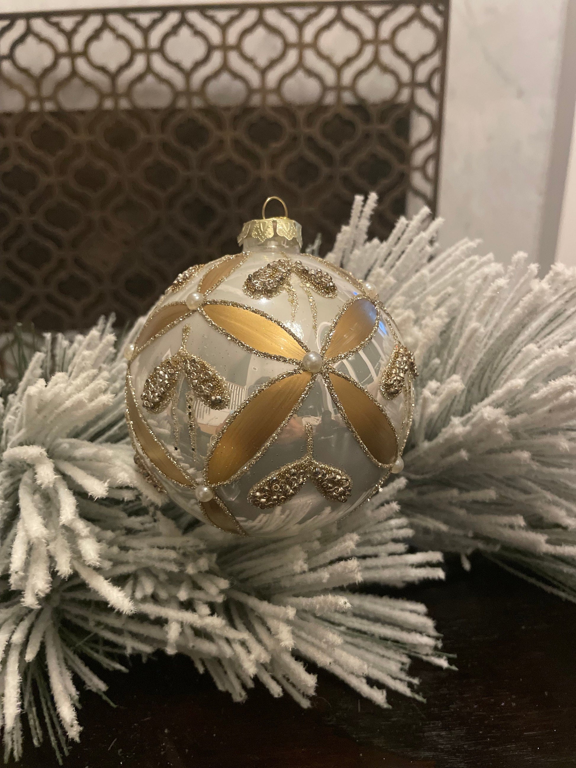 Set of 2. 4" glass gilded regal ornament. Just beautiful!