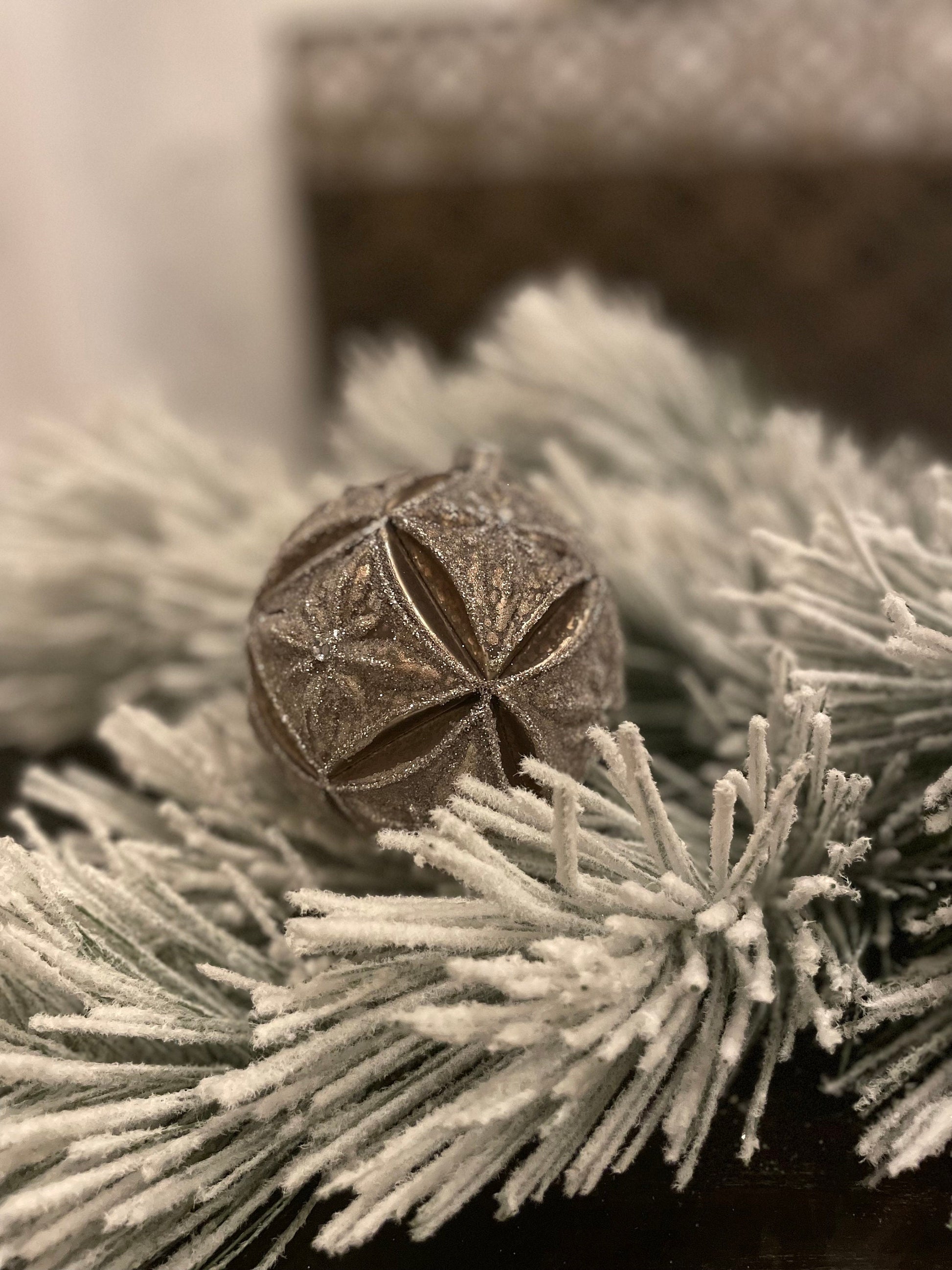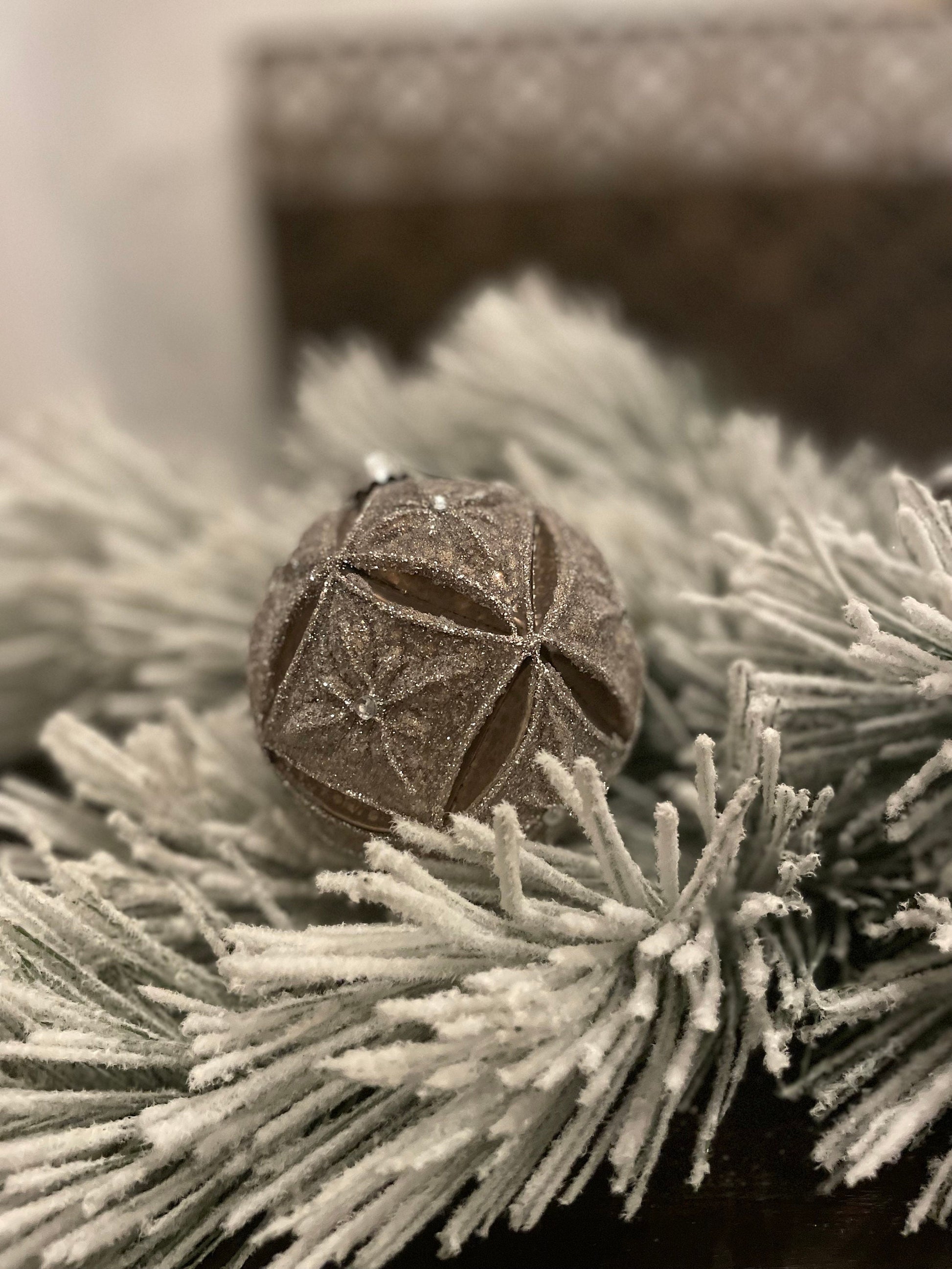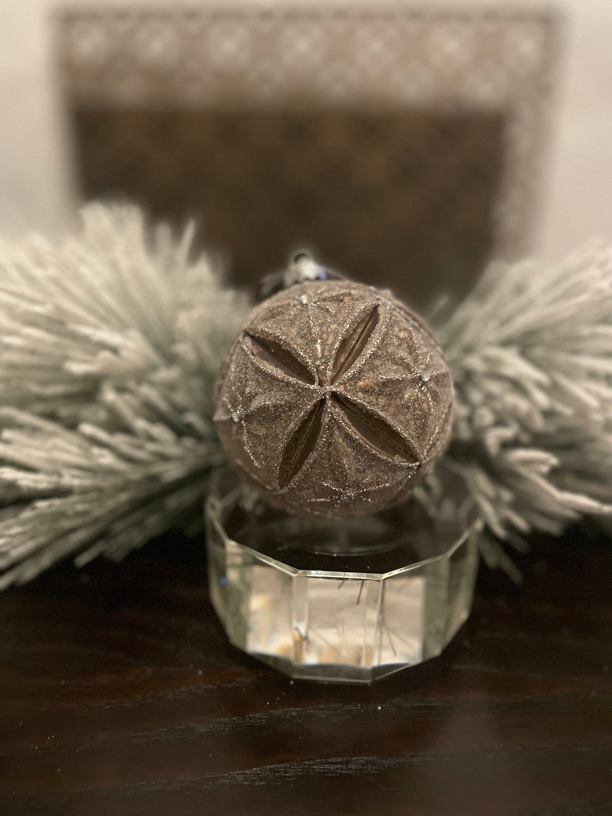 Set of 2. 4" Glass mercury jewel petal ball. Brown and silver.