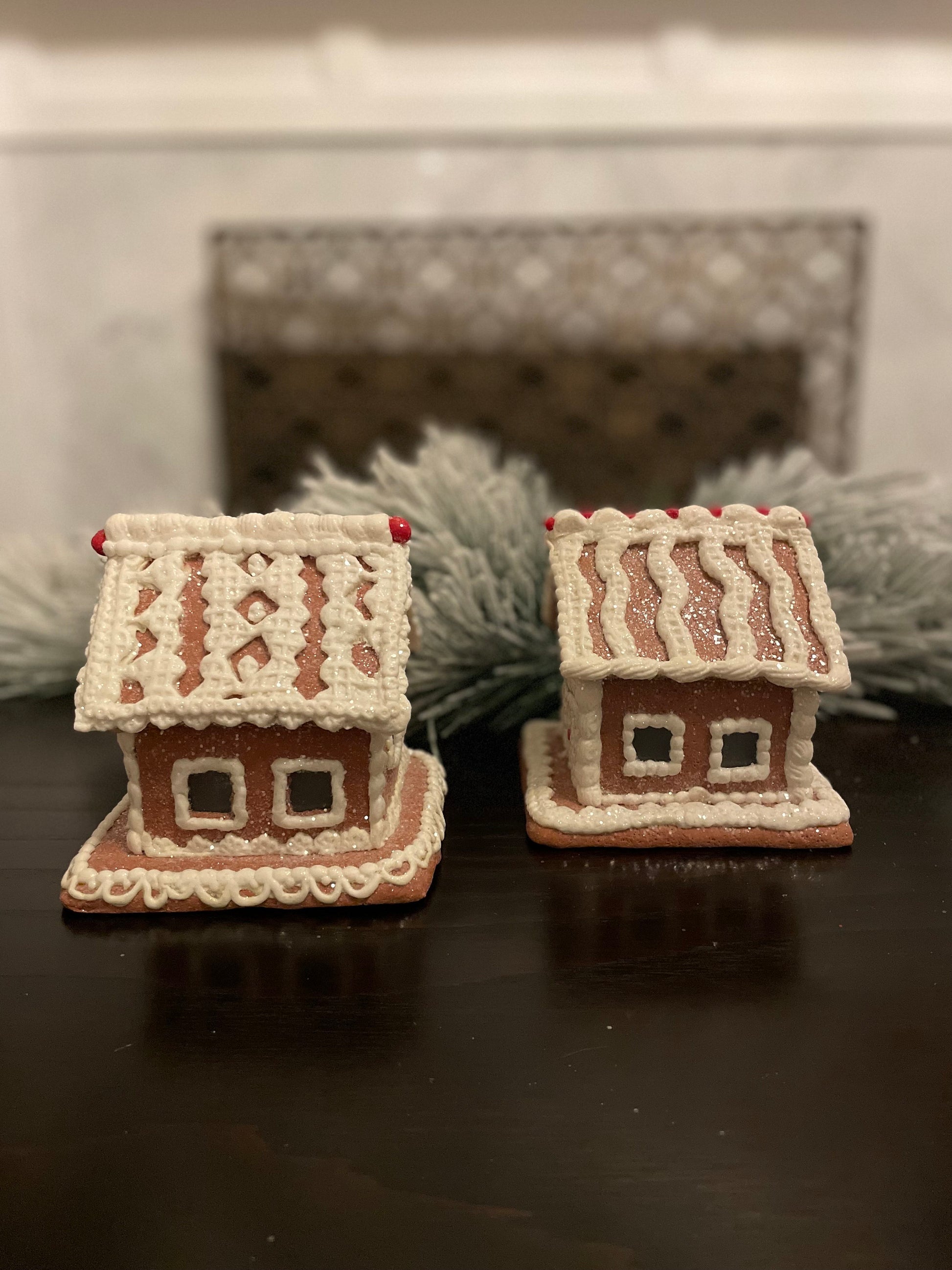 Set of 2. 6.5” Gingerbread lighted house with white icing.