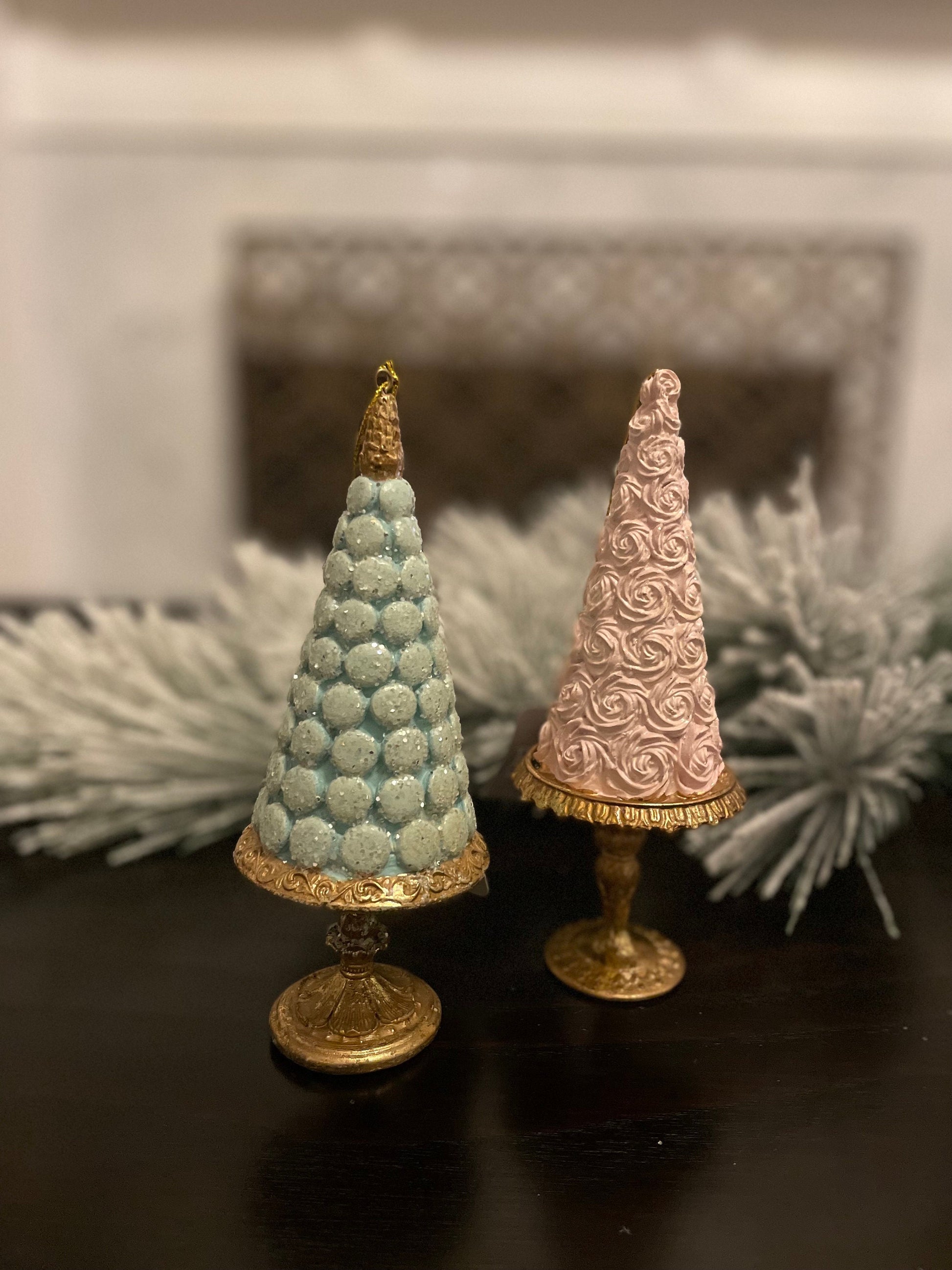 Set of 2. 7.5" Rose icing and macaroon tree ornament. Sweet!