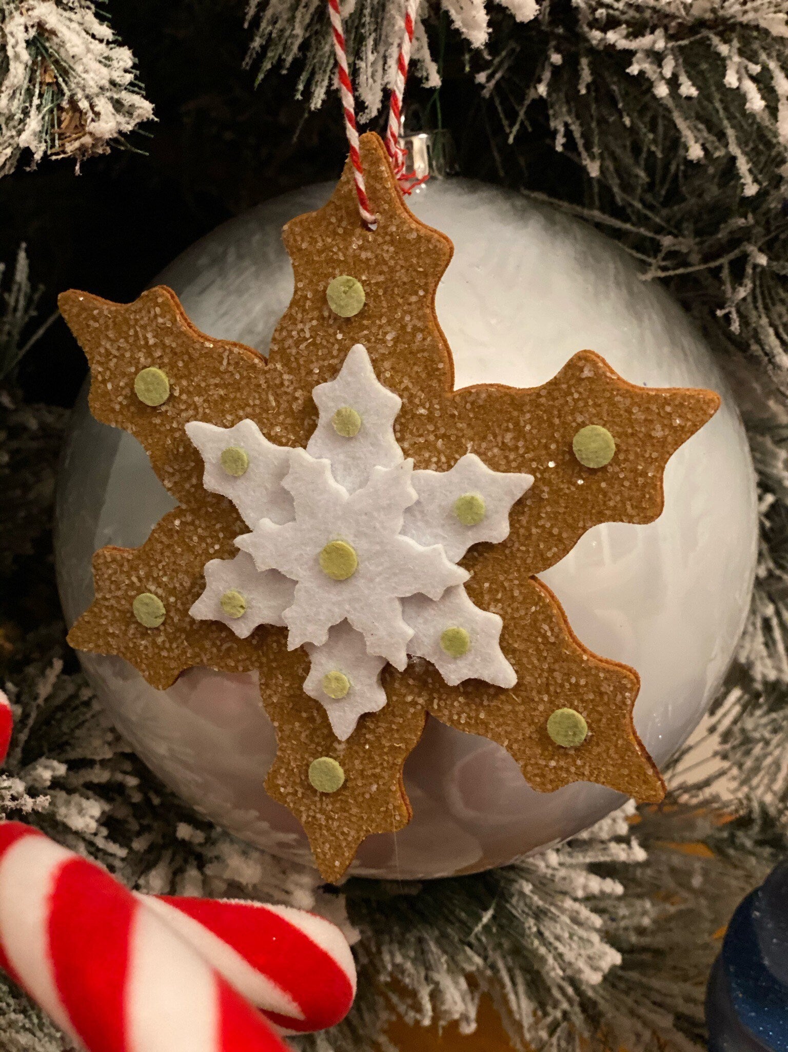 SET of 2. 7" Frosty Gingerbread snowflake.