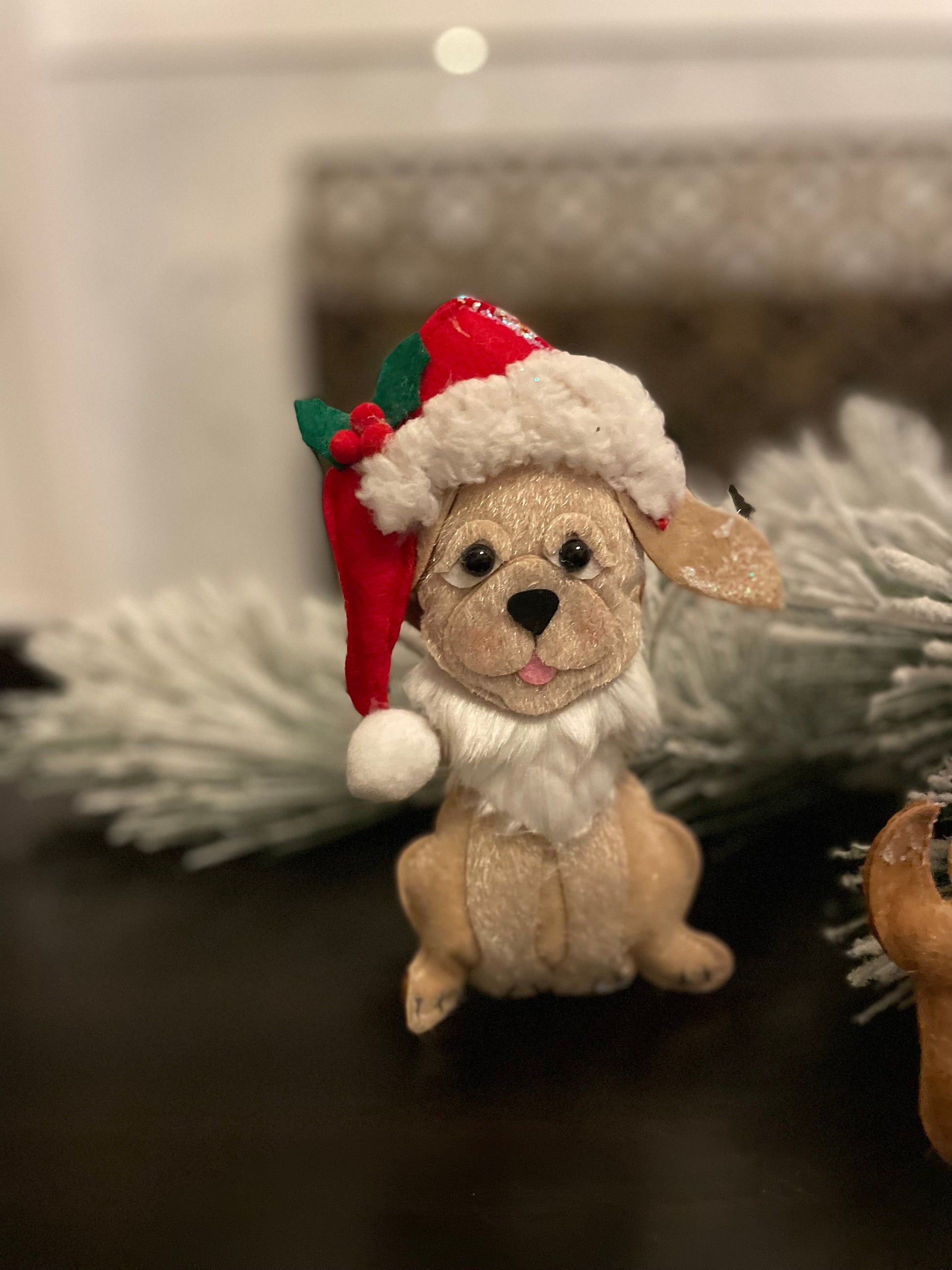 Set of 4. 7.5" Christmas dog ornament. Felt.